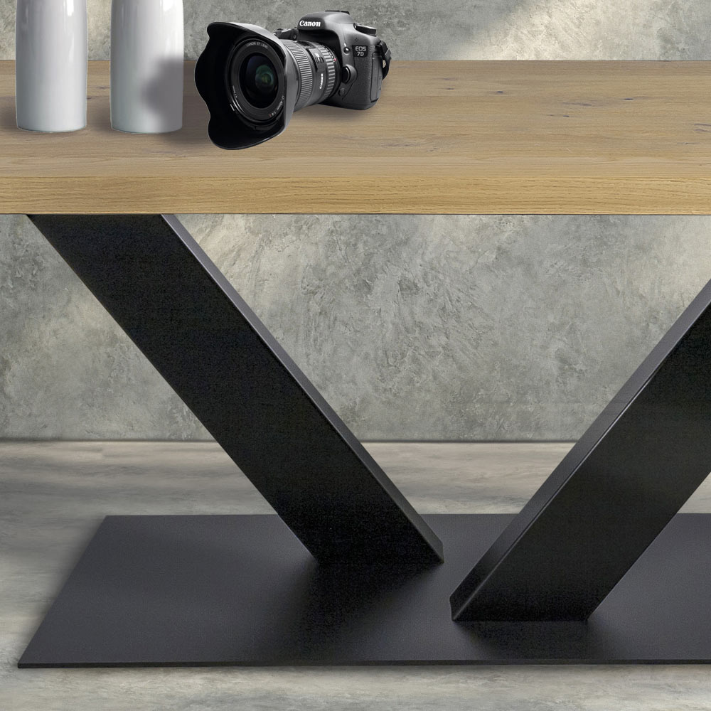Træbord beklædt i fineret knudet eg og metalfod Made in Italy.
