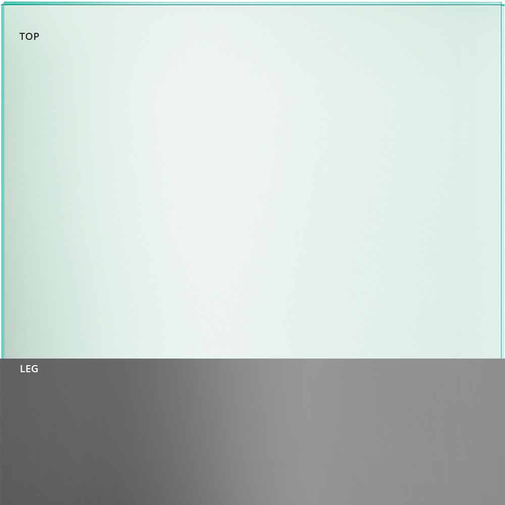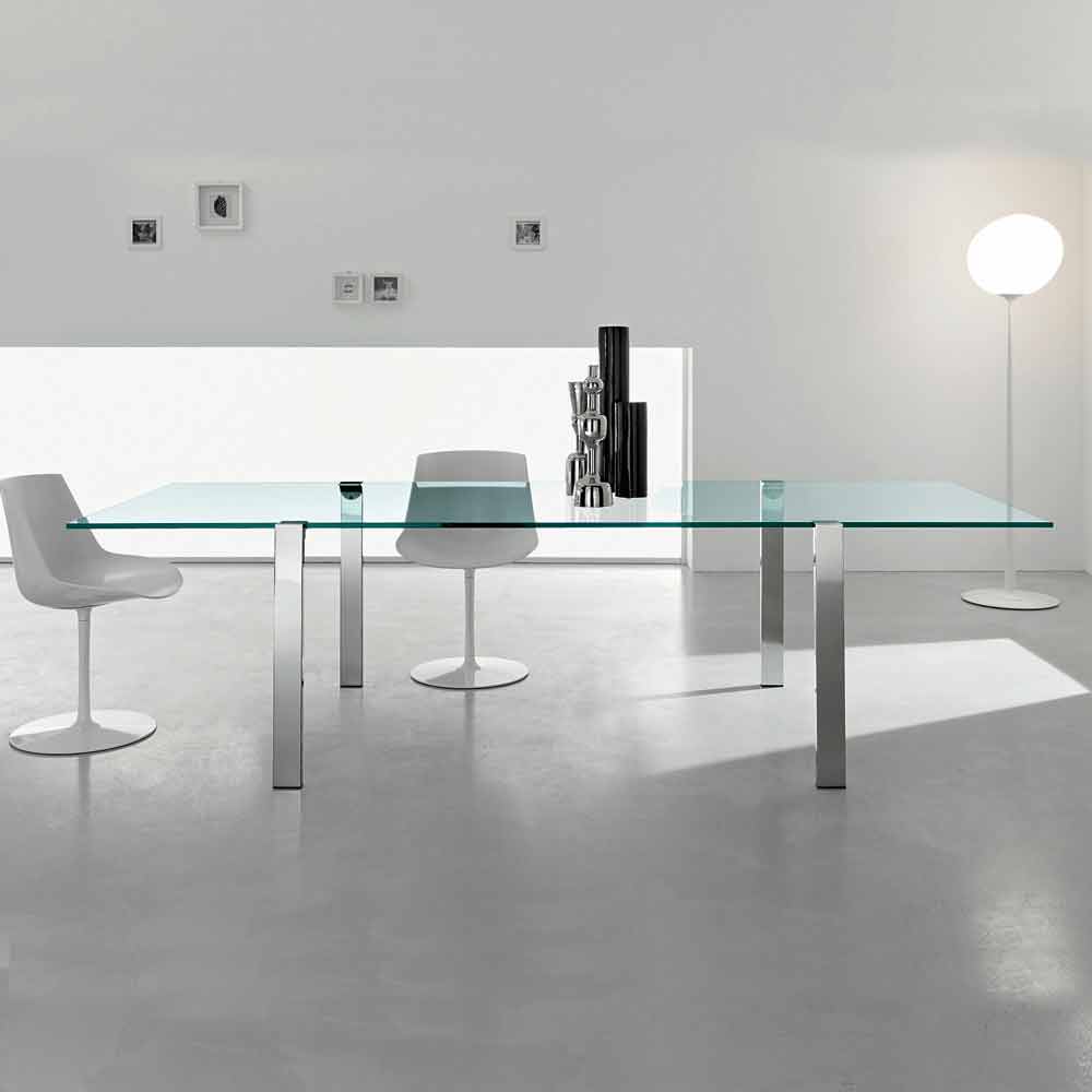 Spisebord i glas med metalben i forskellige størrelser og finish fremstillet i Italien.