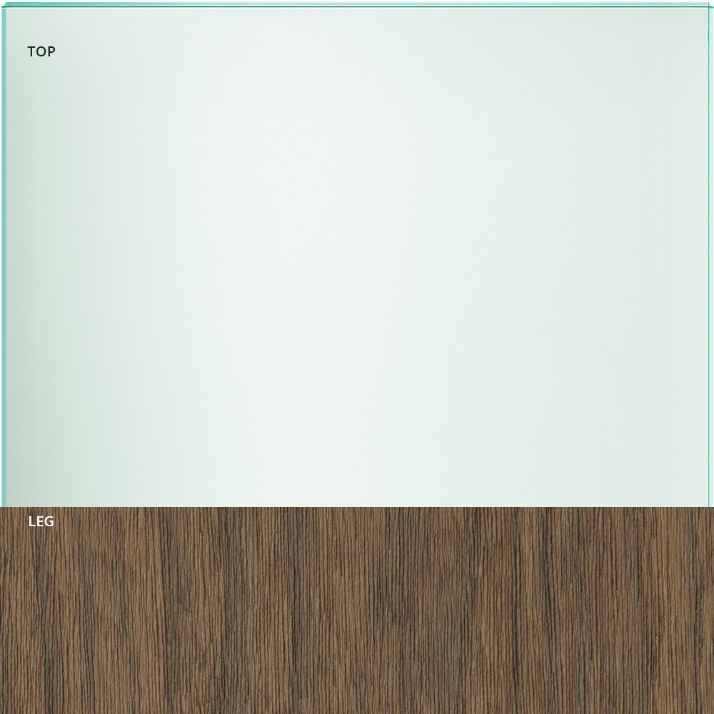 Dette spisebord har et essentielt design lavet med en gennemsigtig glasplade og træben, der fås i to finisher: eg eller canaletto valnød.