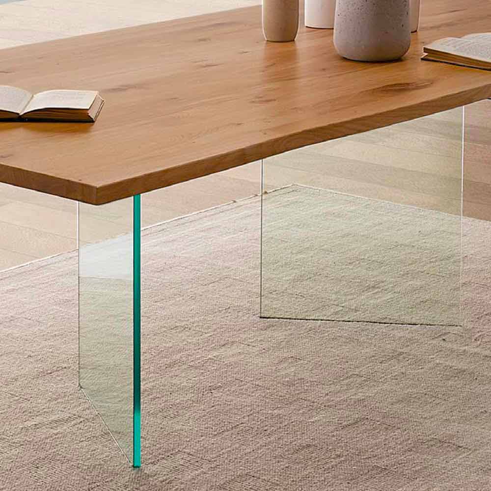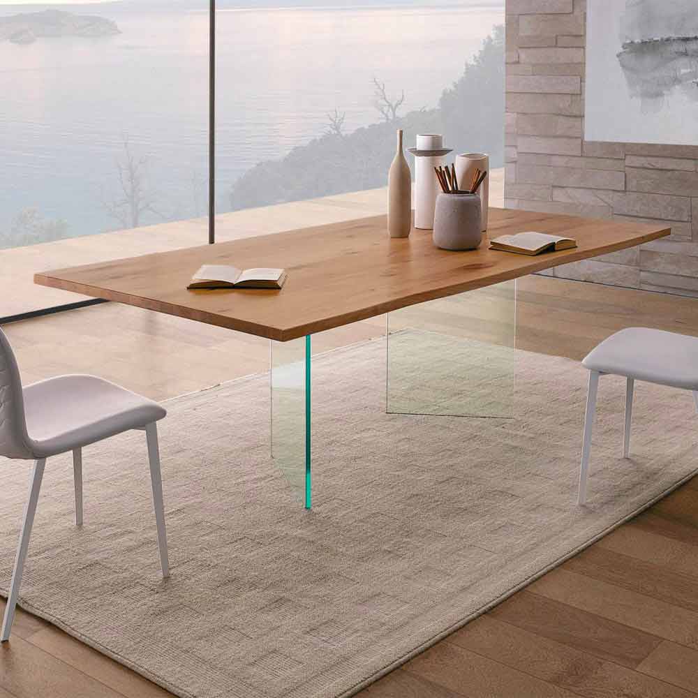 Moderne bord til spisestue lavet af glas og træ, høj kvalitet Made in Italy produkt.