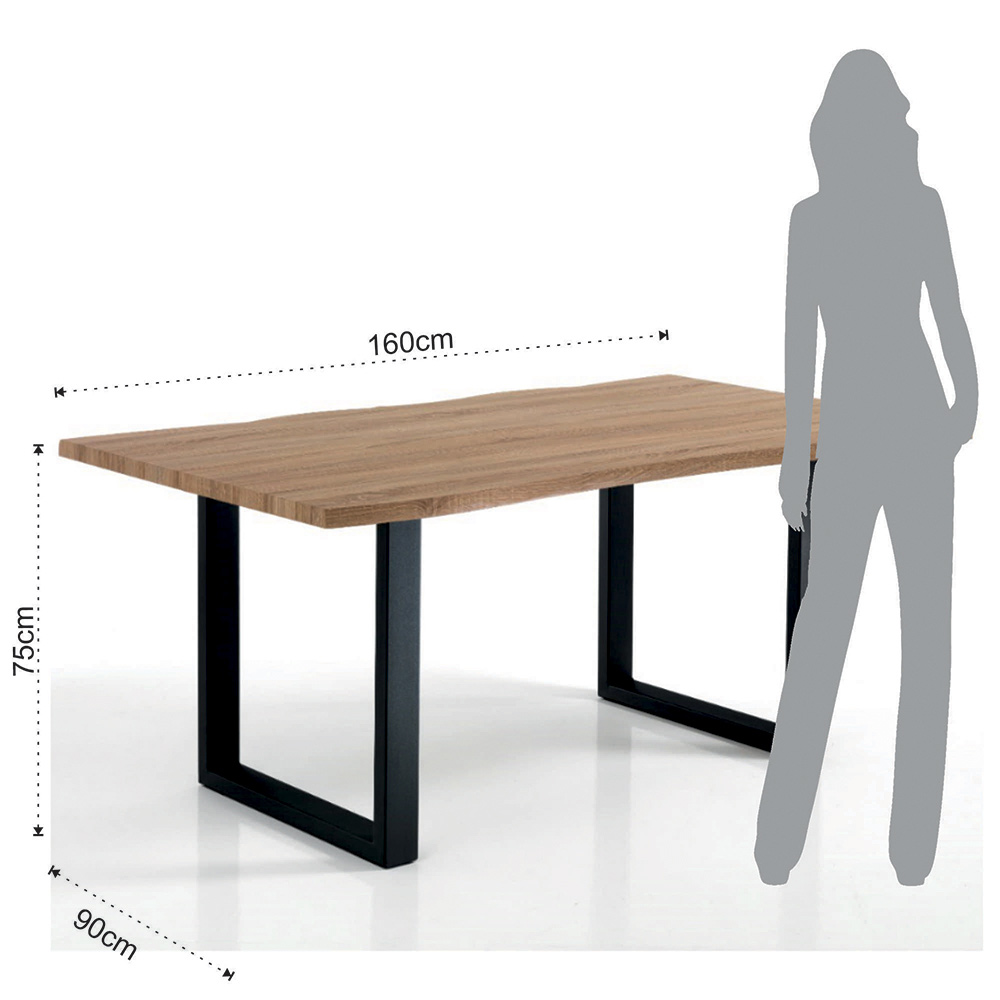 Spisebord i egetræsfinish mdf med sorte stålben.