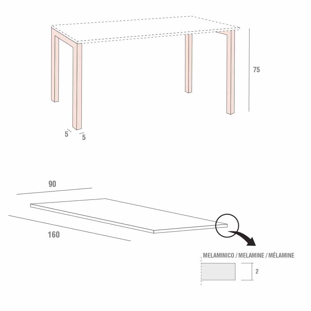 Melamin spisebord med hvidlakeret metalstruktur Made in Italy.
