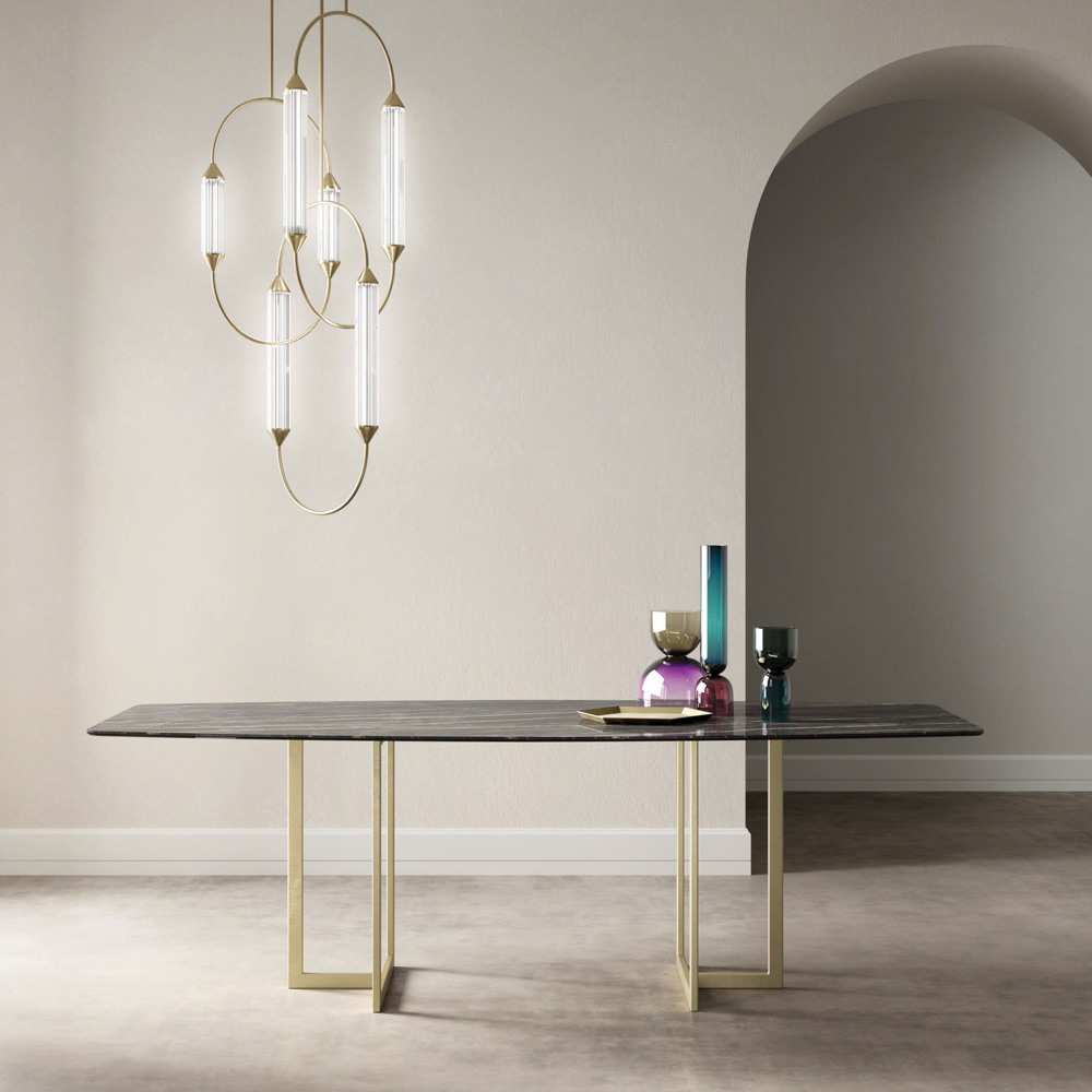 Spisebord med fadplade i marmor-effekt porcelæn stentøj Made in Italy.