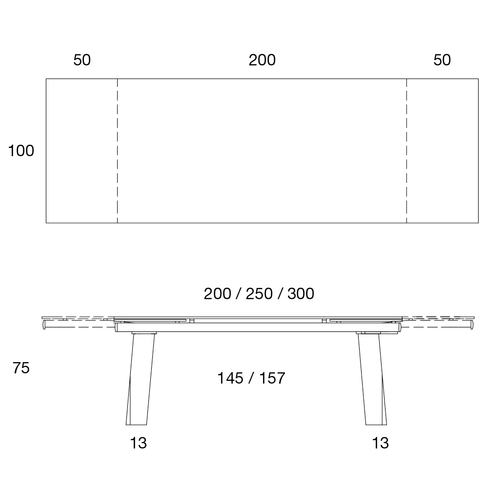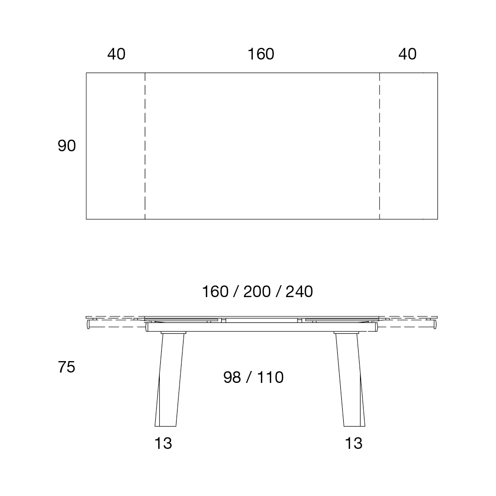 plade i ekstra klart transparent hærdet glas med to udtræk og et udtrækbart aluminiumsstel.