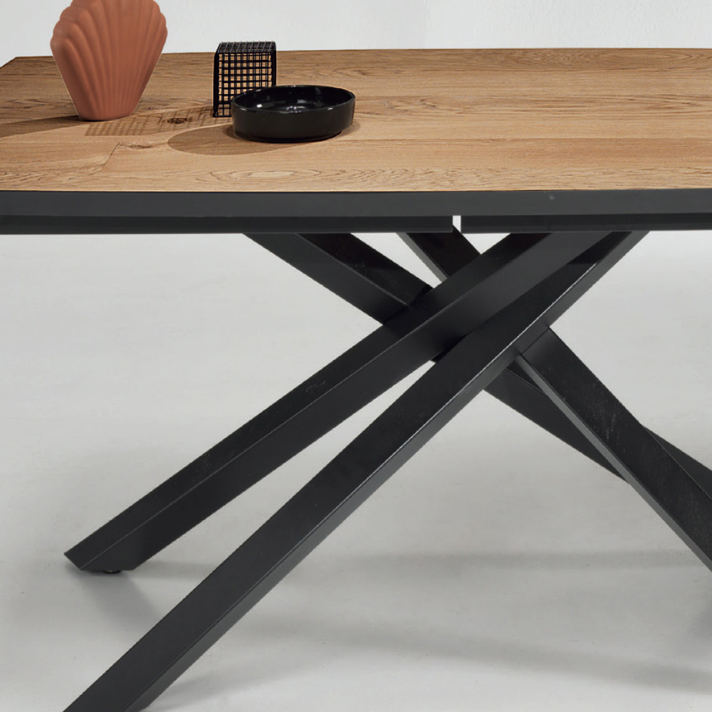 Spisebord med plade i fineret egetræ Fremstillet i Italien.