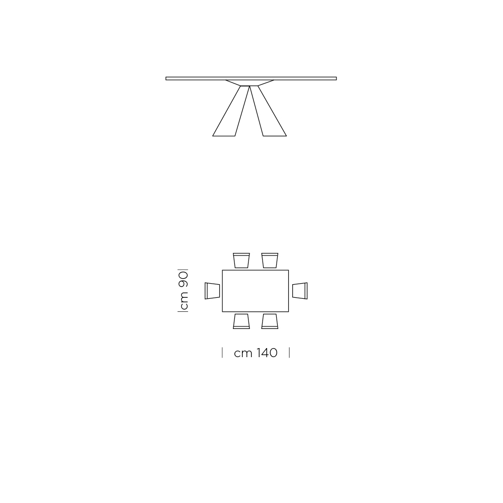 - L 140 x D 90 x H 75,5 cm (6 sæder);