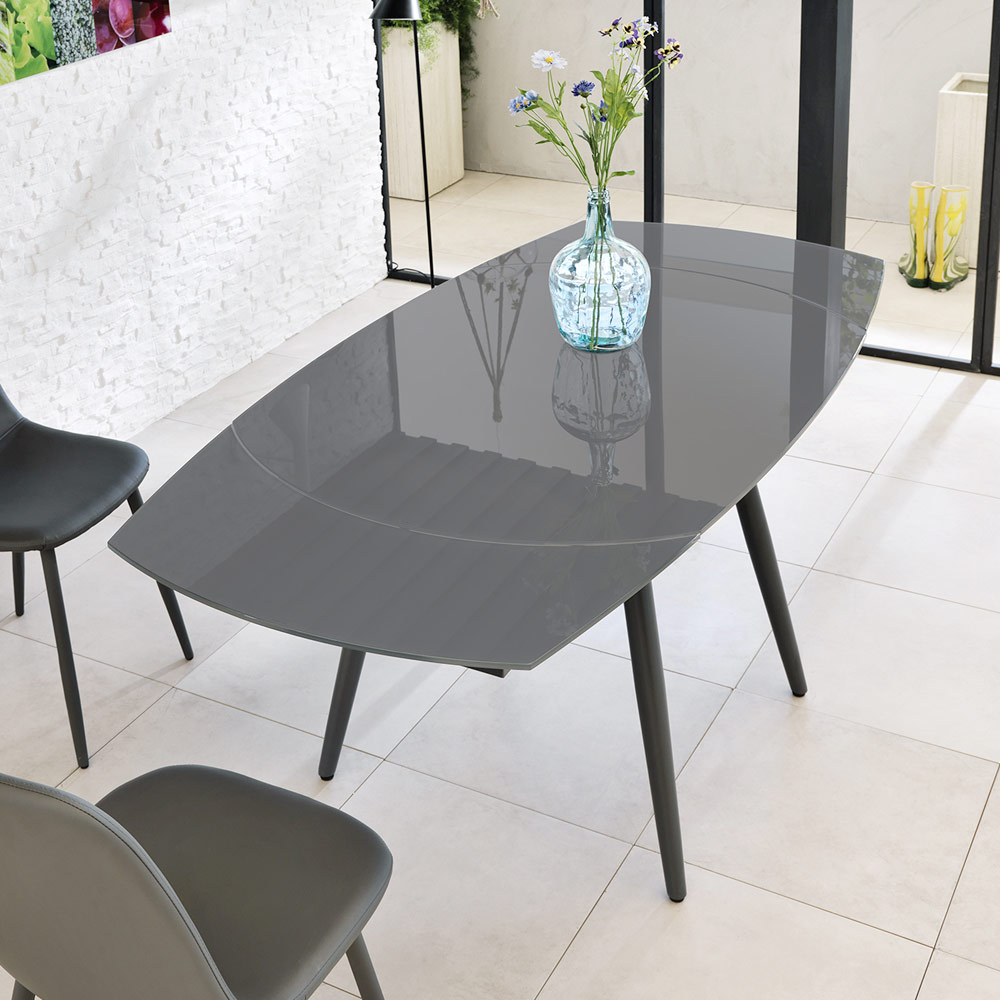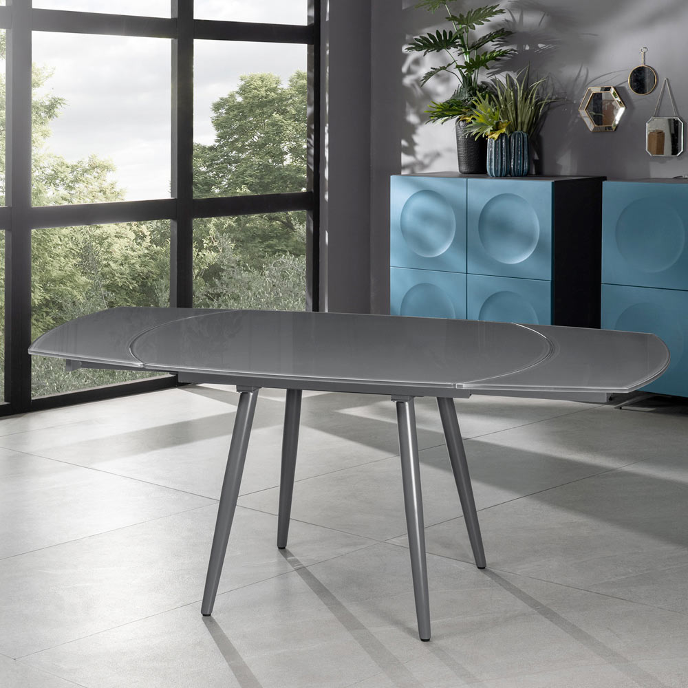 Moderne udtrækkeligt spisebord Lord med hærdet glasplade