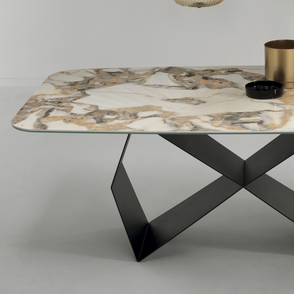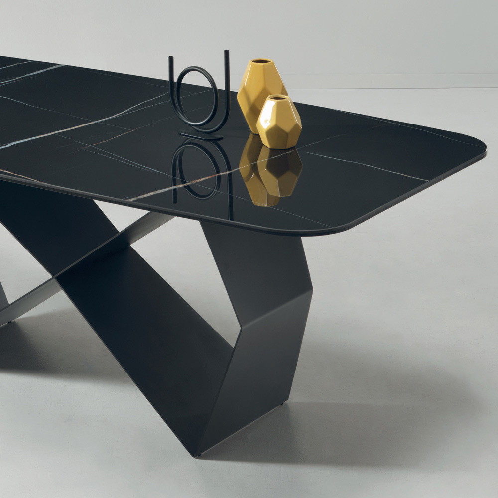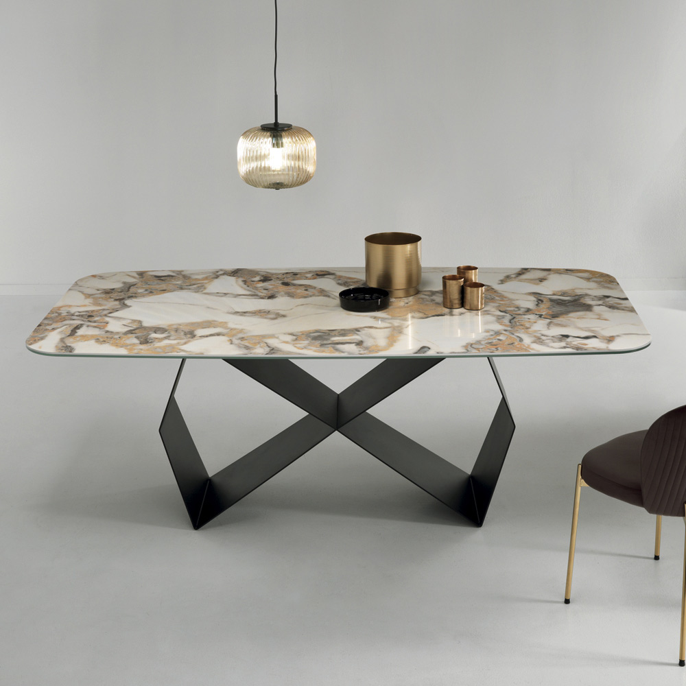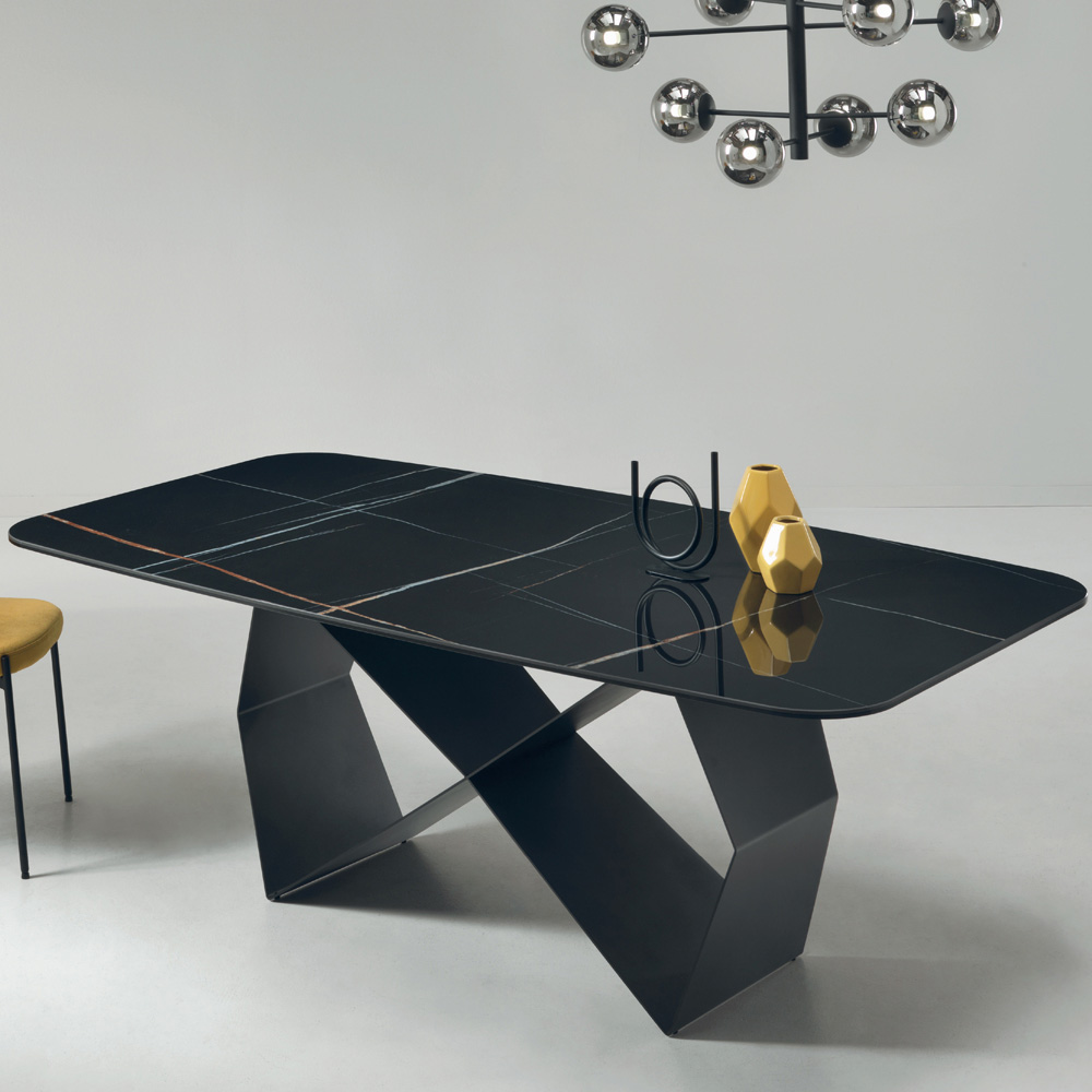 Spisebord i marmoreffekt keramik og sort metal Made in Italy.