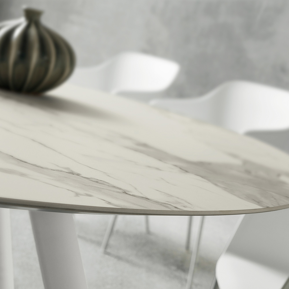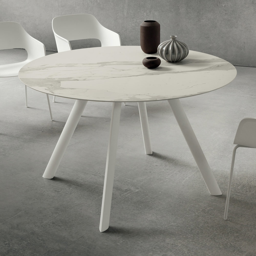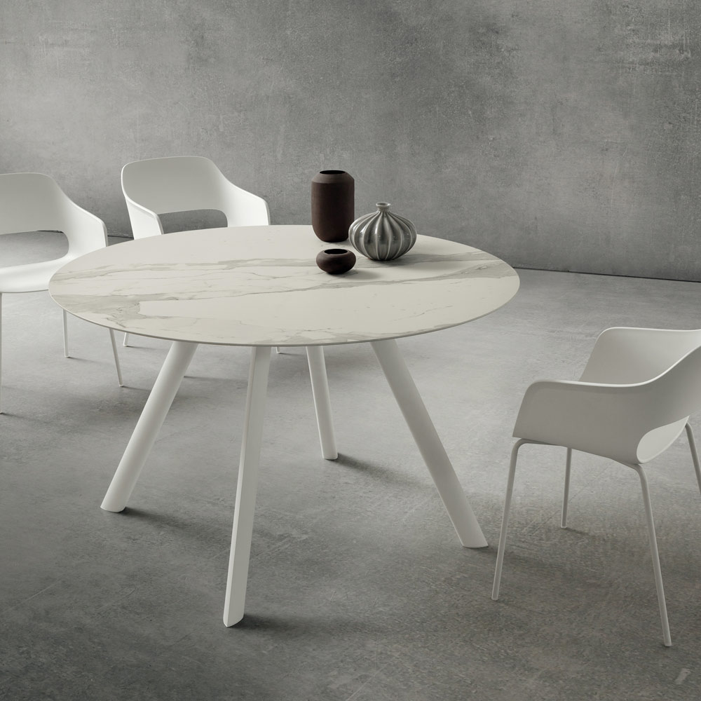 Luksus spisebord med rund laminam keramikplade Made in Italy.