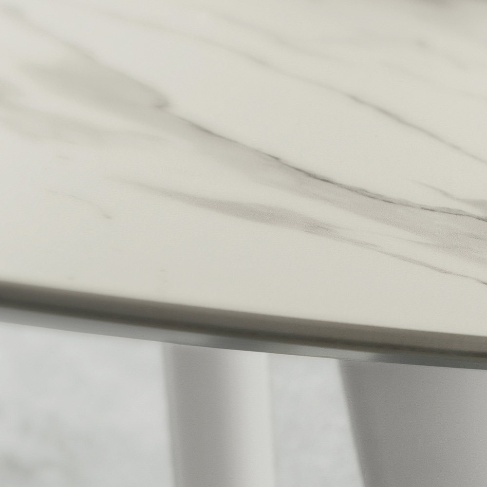 pulverlakerede aluminium ben i hvid finish. Fra mødet mellem marmoreffektens tidløse elegance og steneffekten og det moderne strejf af aluminium, fødes et møbel med en