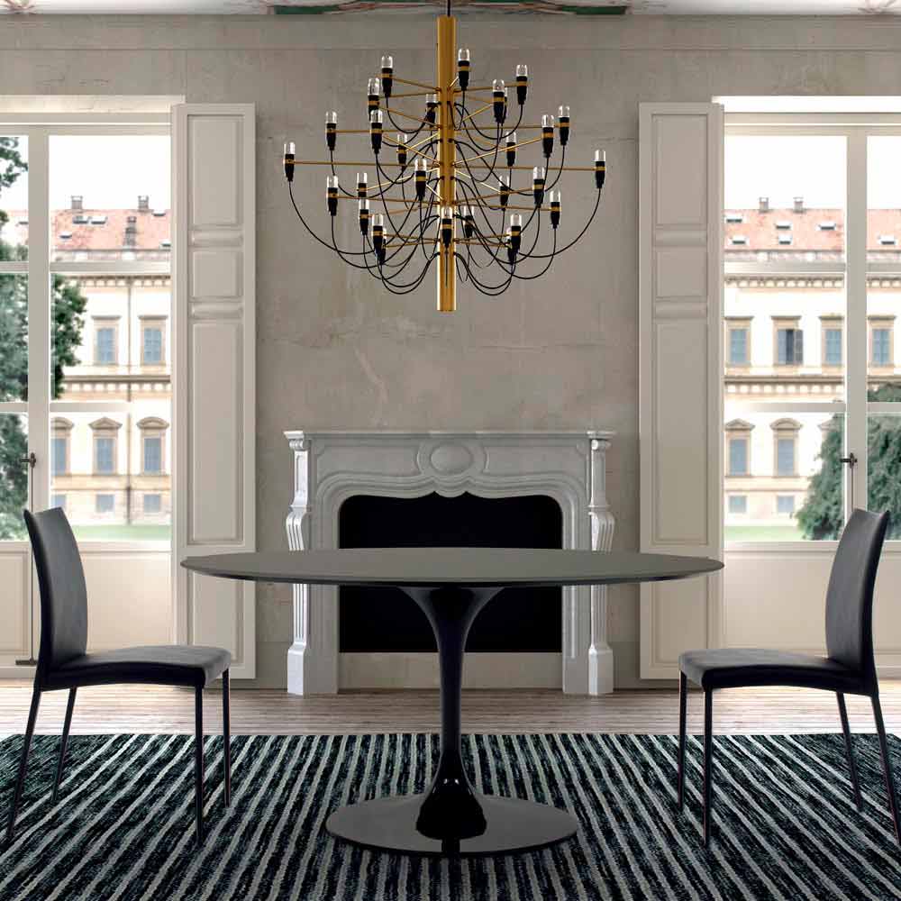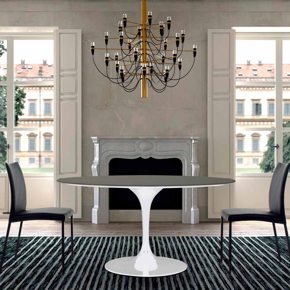 Rundt spisebord i fenix og lakeret aluminium, Made in Italy, høj kvalitet.