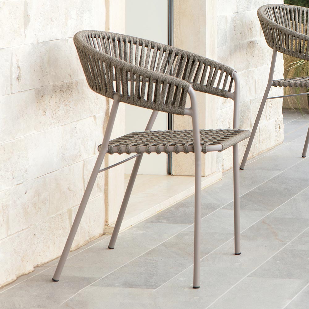 Stabelbar lænestol i galvaniseret stål og 2-delt reb. Fremstillet i Italien.