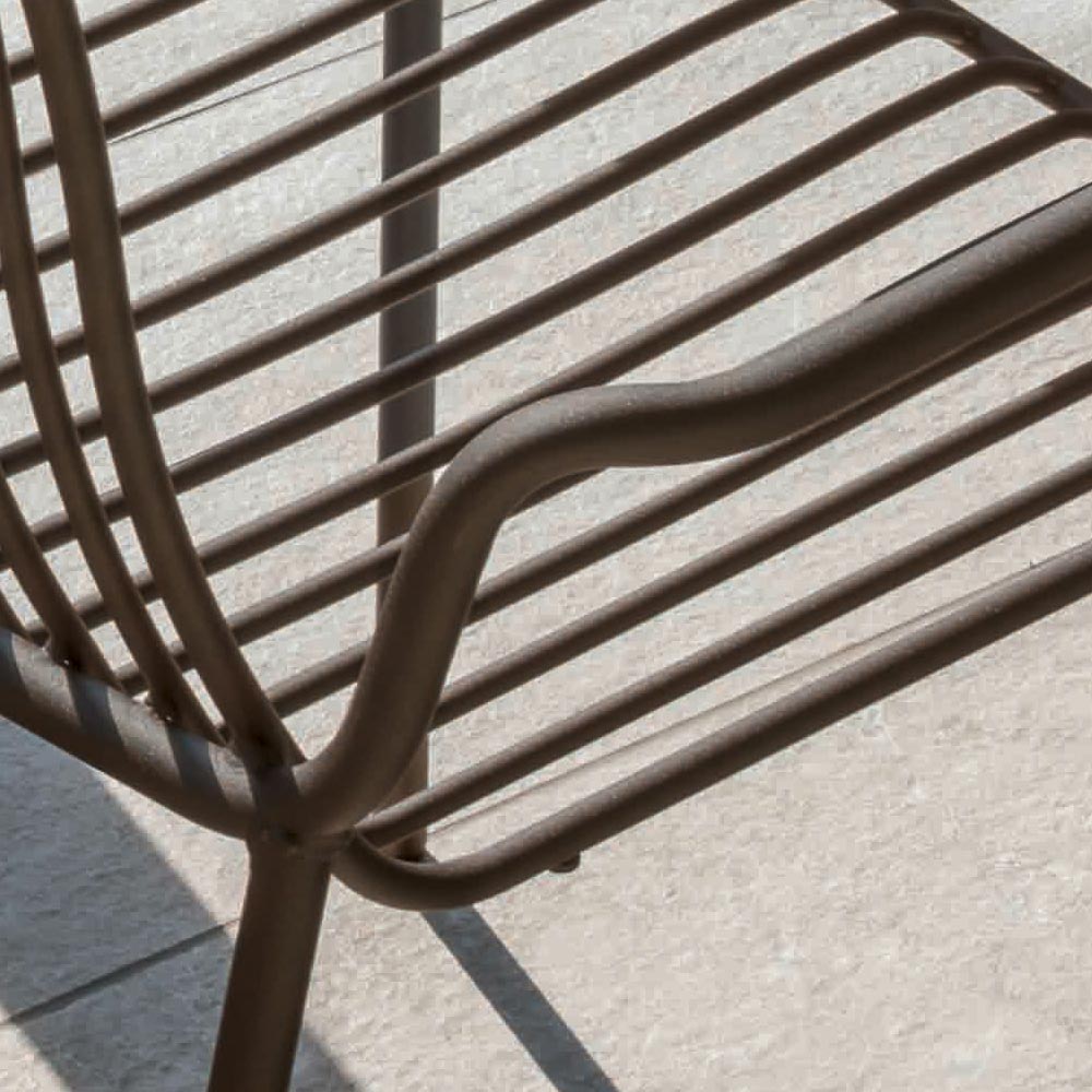 Det elegante udvalg af farver, der foreslås, gør den til en særlig alsidig stol, ideel til at indrette dine udendørsrum med et strejf af