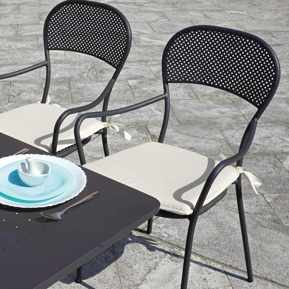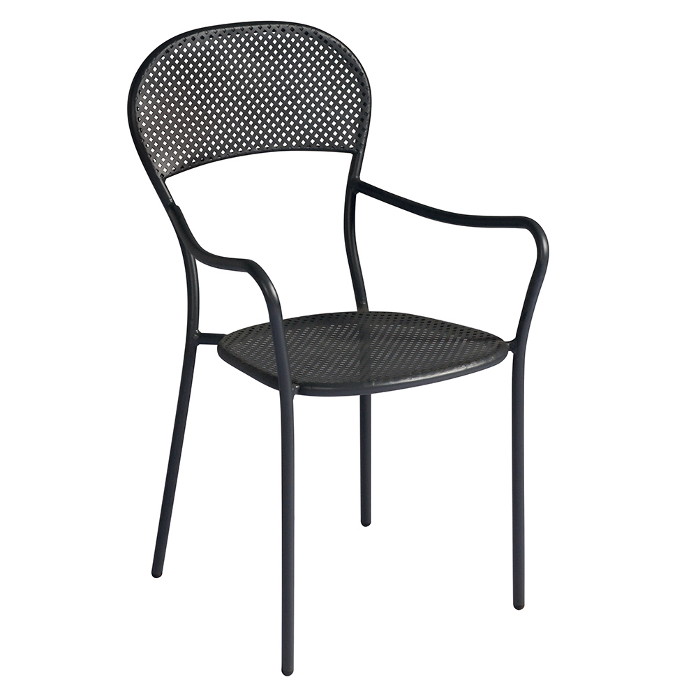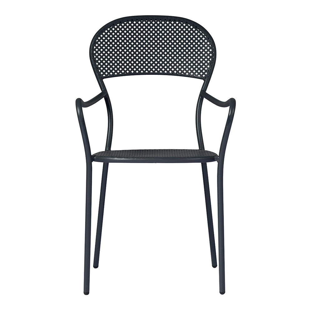 Udendørs stol lavet af jern med antracitgrå finish med stabelbar struktur komplet med praktiske armlæn . Dette moderne møbel har et umiskendeligt design med et behageligt og behageligt sæde . En indretningsidé, der er i stand til at give karakter og personlighed til ethvert udendørsmiljø, lige fra hjemlige omgivelser som haver og terrasser til kontraktrum som udendørs barer og restauranter.