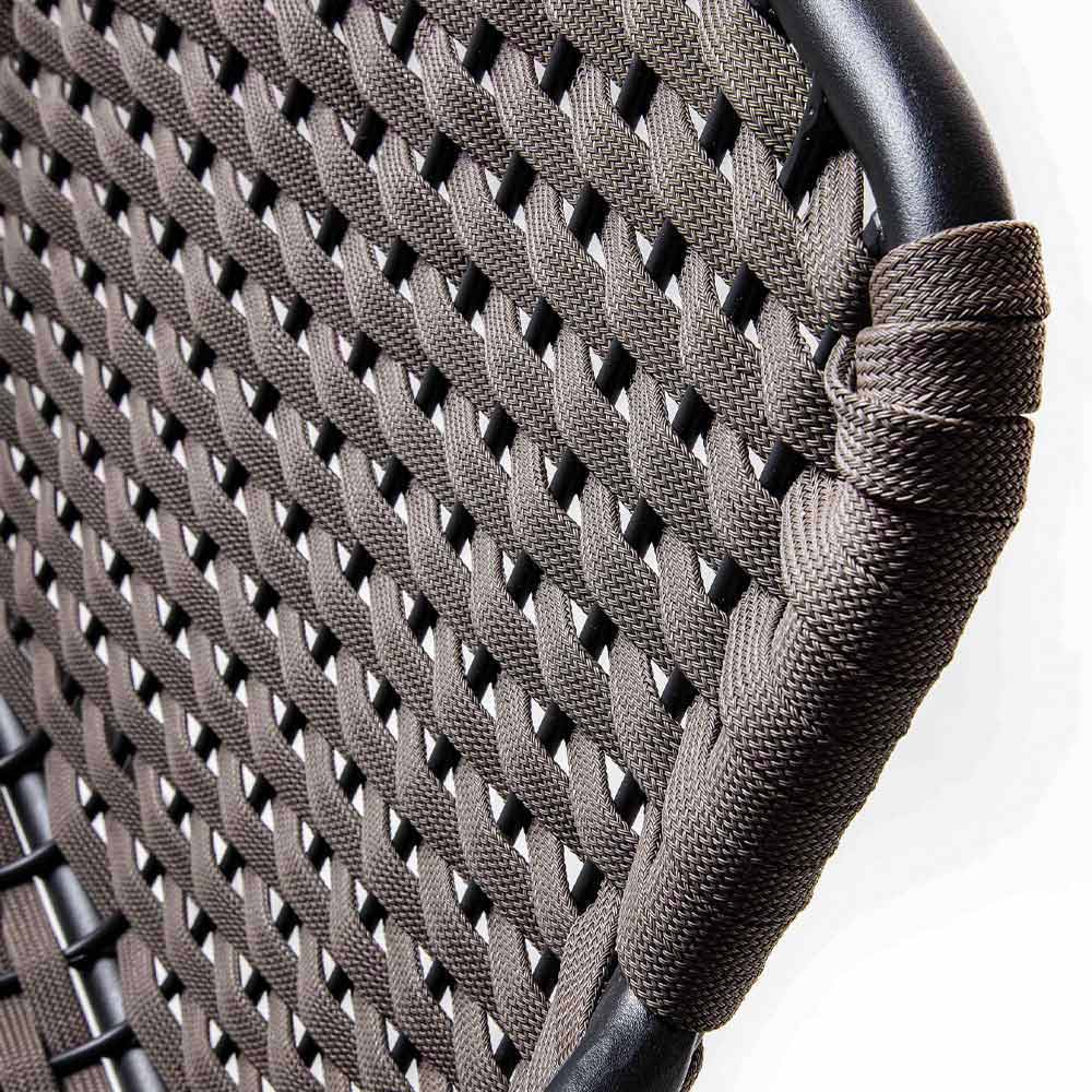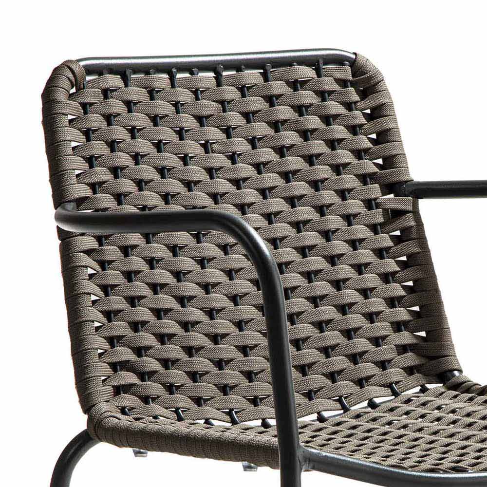 Havestol lavet i antracit finish galvaniseret metal med sæde og ryg i vævet polyester reb (gummi indvendigt) antracit finish, udstyret med armlæn og stabel struktur. Fra mødet mellem et væsentligt og alsidigt design og en funktionel og behagelig æstetik fødes et sæde, der passer perfekt til enhver udendørs situation, hvilket skaber en perfekt harmoni med de andre tilstedeværende elementer eller spiller på vidunderlige stilkontraster for et eksklusivt og stilfuldt resultat. avantgarde .