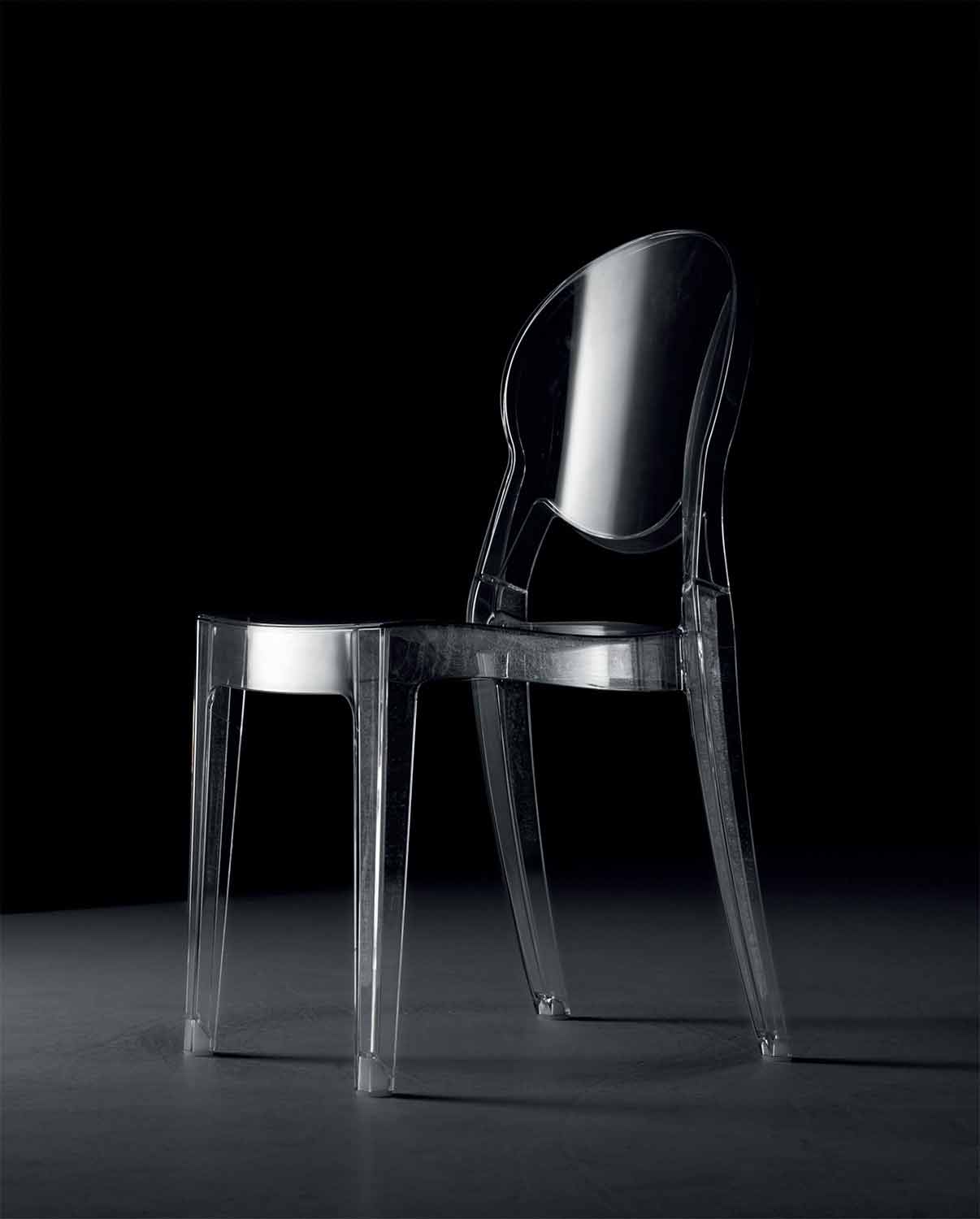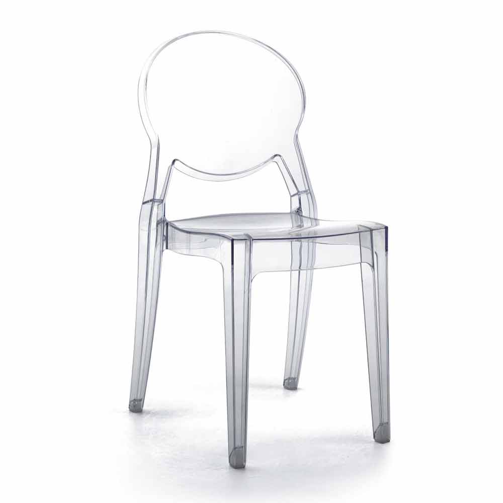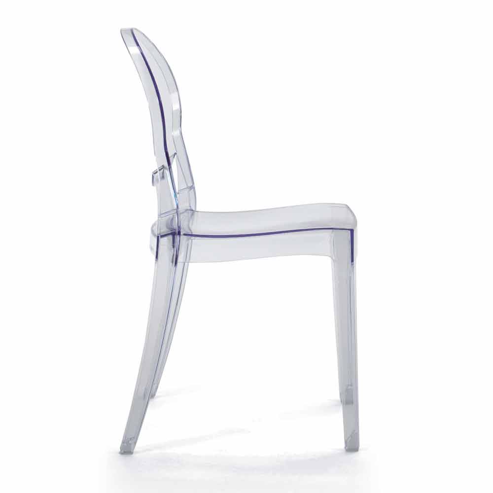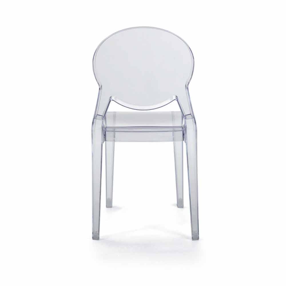 Stabelbar moderne designstol velegnet til udendørs og indendørs brug i transparent polycarbonat, fremstillet i Italien.