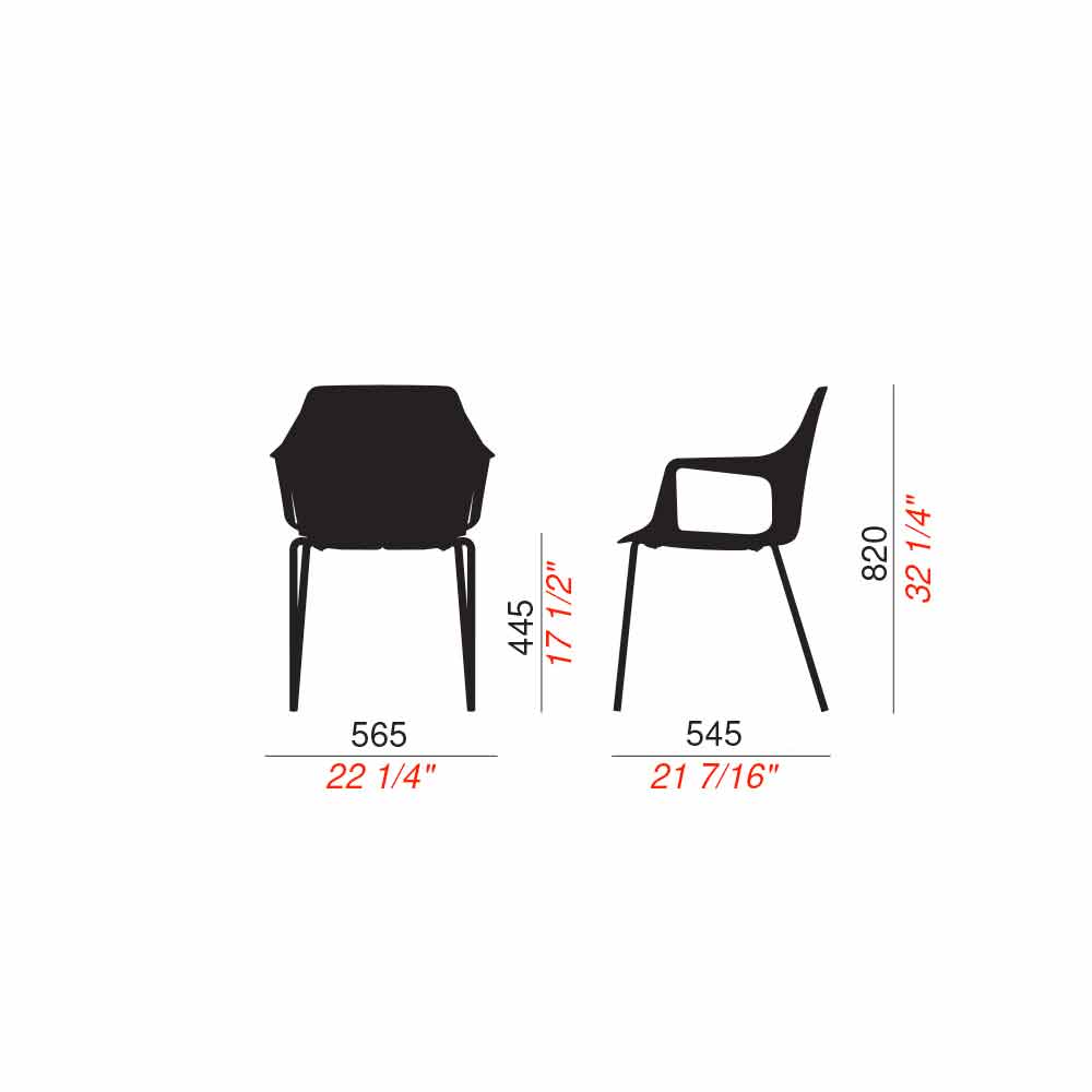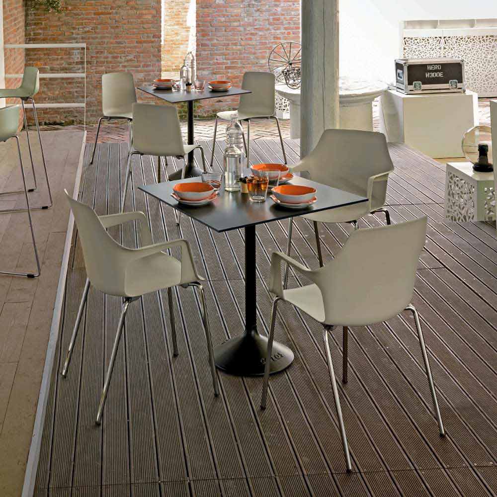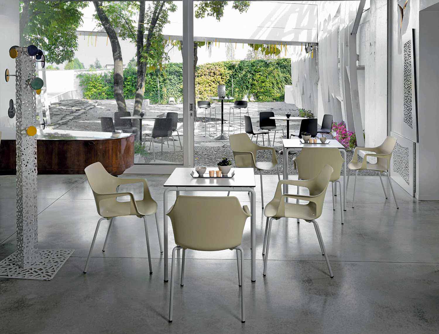 Stabelbar spisestol i metal og polypropylen med armlæn Fremstillet i Italien, 4 stk.