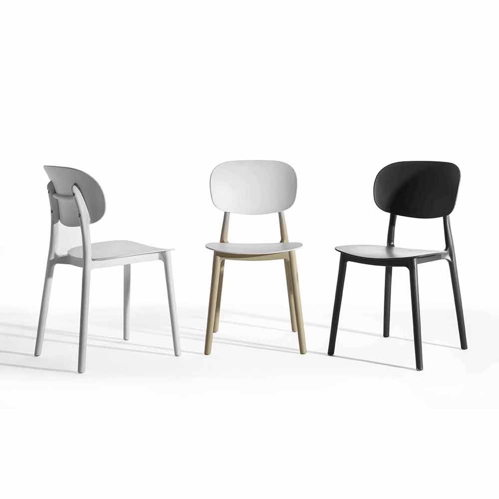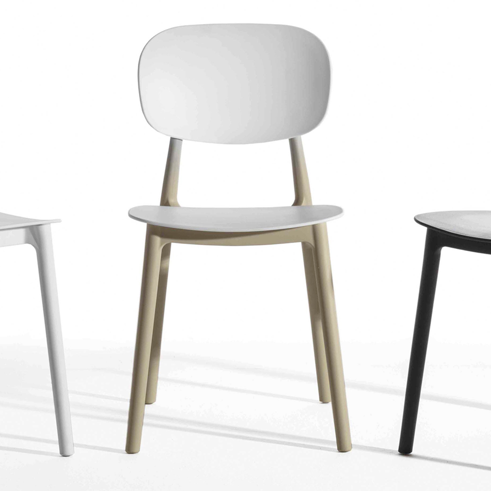 komfort . Dens struktur sikrer faktisk et behageligt og indbydende sæde på trods af dets enkle design og giver dig også mulighed for at stable stole op til maksimalt 2 enheder, hvilket giver dig mulighed for at optimere pladsen, når det er nødvendigt. Desuden afspejler de foreslåede neutrale farver det
