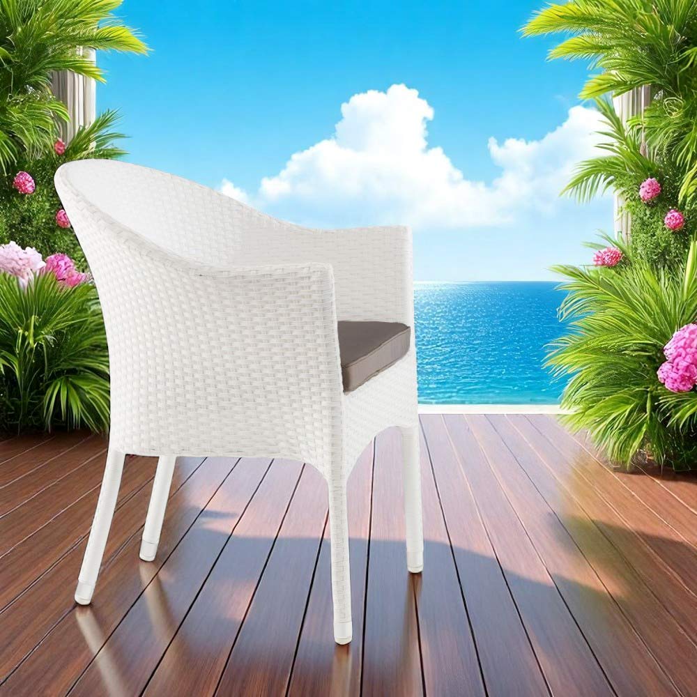 Dens hvide vævede fletbelægning giver en elegant og luftig visuel effekt, perfekt til dem, der elsker en naturlig, men raffineret stil. Det stabelbare design gør den yderst funktionel og pladsbesparende , ideel til både bolig- og kontraktsammenhænge, såsom hoteller , restauranter eller udendørs spillesteder .