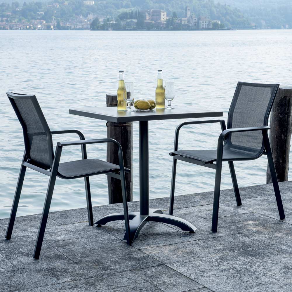 Kombiner moderne stil og funktionalitet med denne stol i aluminium og textilene, der er designet til at give komfort og holdbarhed i ethvert udendørs miljø. Den lette, men robuste aluminiumsstruktur sikrer holdbarhed og upåklagelig vejrbestandighed, hvilket gør den ideel til terrasser, haver eller kontraktrum.