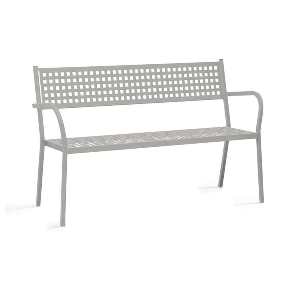 Stabelbar udendørsbænk med armlæn i galvaniseret stål. Fremstillet i Italien.
