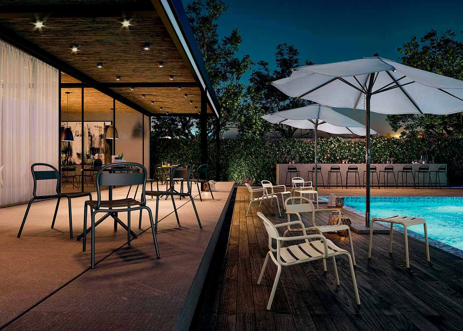 Designet af denne chaiselong gør det nemt at forestille sig i en have eller terrasse, men udelukker ikke brugen, selv i indendørs situationer i hjemlige og ikke-hjemlige miljøer. Takket være de 8 tilgængelige farver tilpasser den sig perfekt af malet aluminium , og den tilpasser sig perfekt til enhver møbleringssituation, fra det mest moderne til det mest traditionelle, hvilket hjælper med at give rummet farve og personlighed.