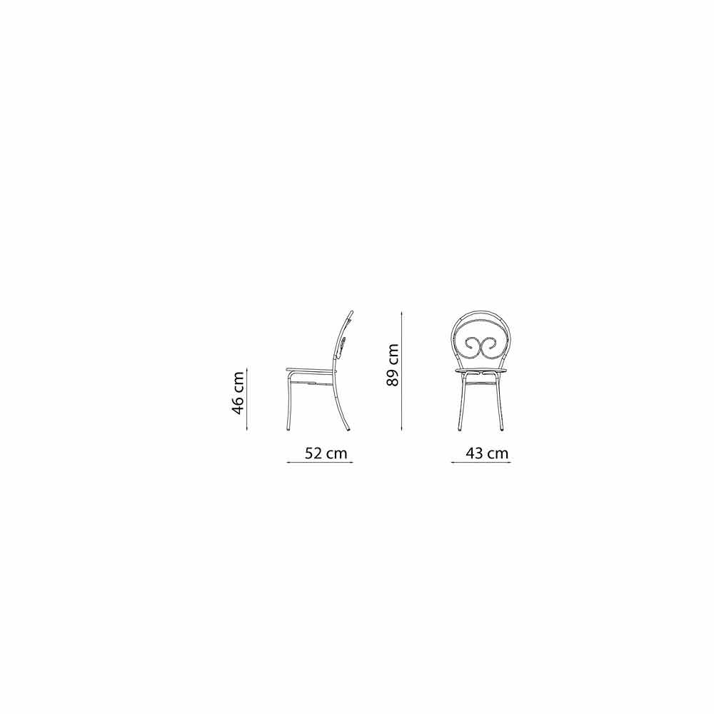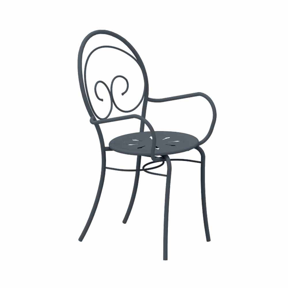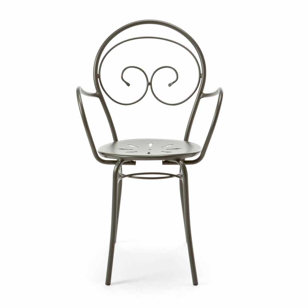 Stabelbar udendørsstol med eller uden armlæn i pulverlakeret galvaniseret jern. Fremstillet i Italien, 2 stk.