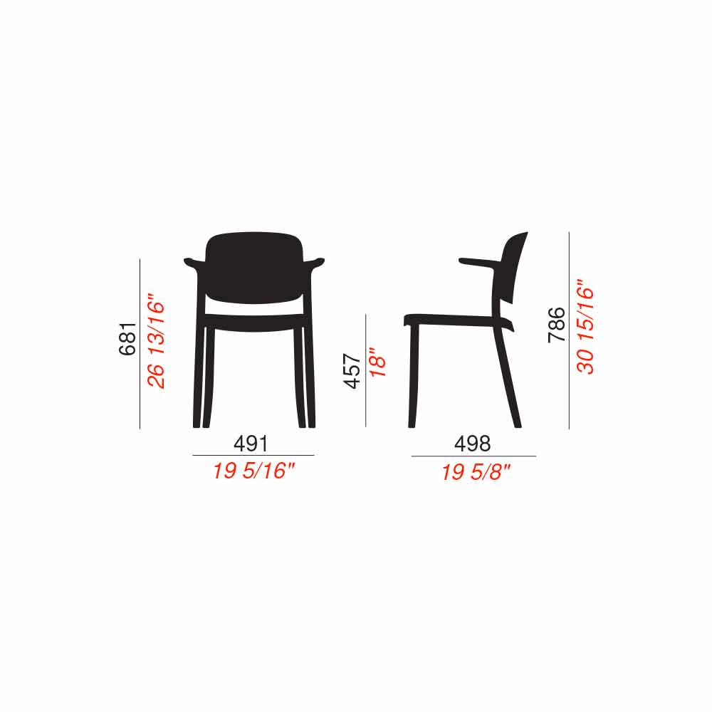 Udendørs stol i polypropylen-design med stabelbare armlæn, 4 stk., Fremstillet i Italien.
