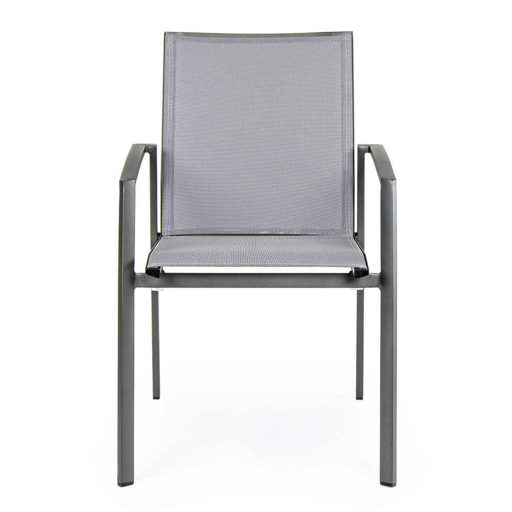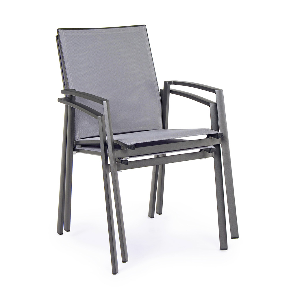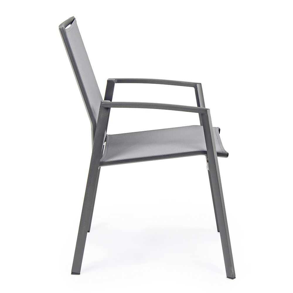 Stabelbar udendørs stol i aluminium og tekstil med armlæn, 4 stk.