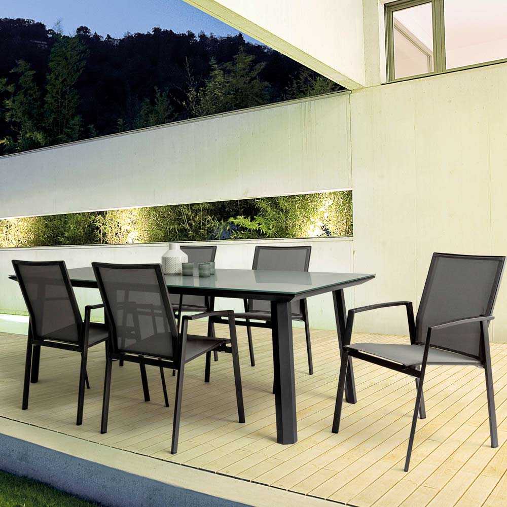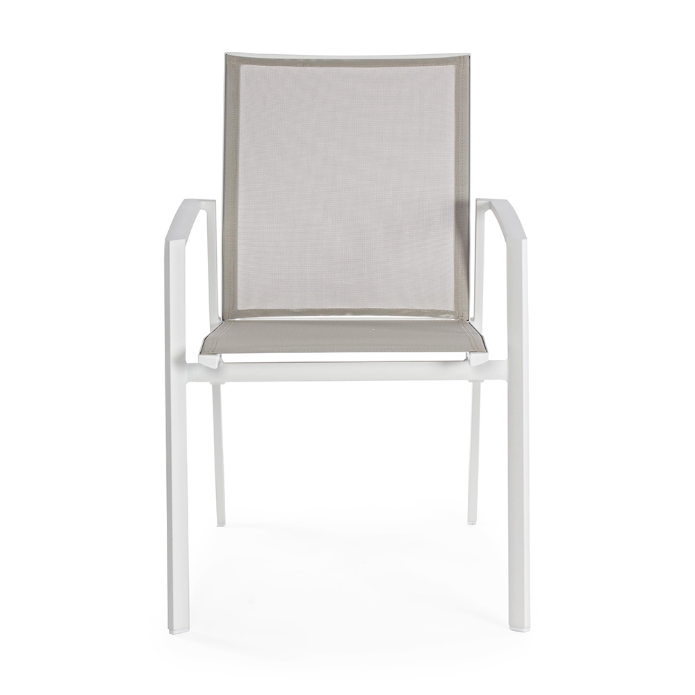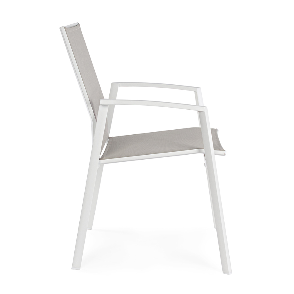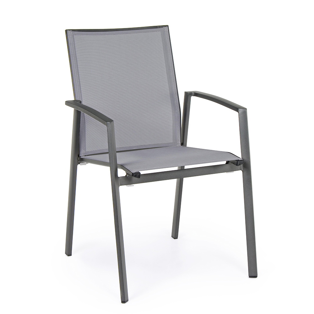 Stabelbar udendørs stol i aluminium og tekstil med armlæn, 4 stk.
