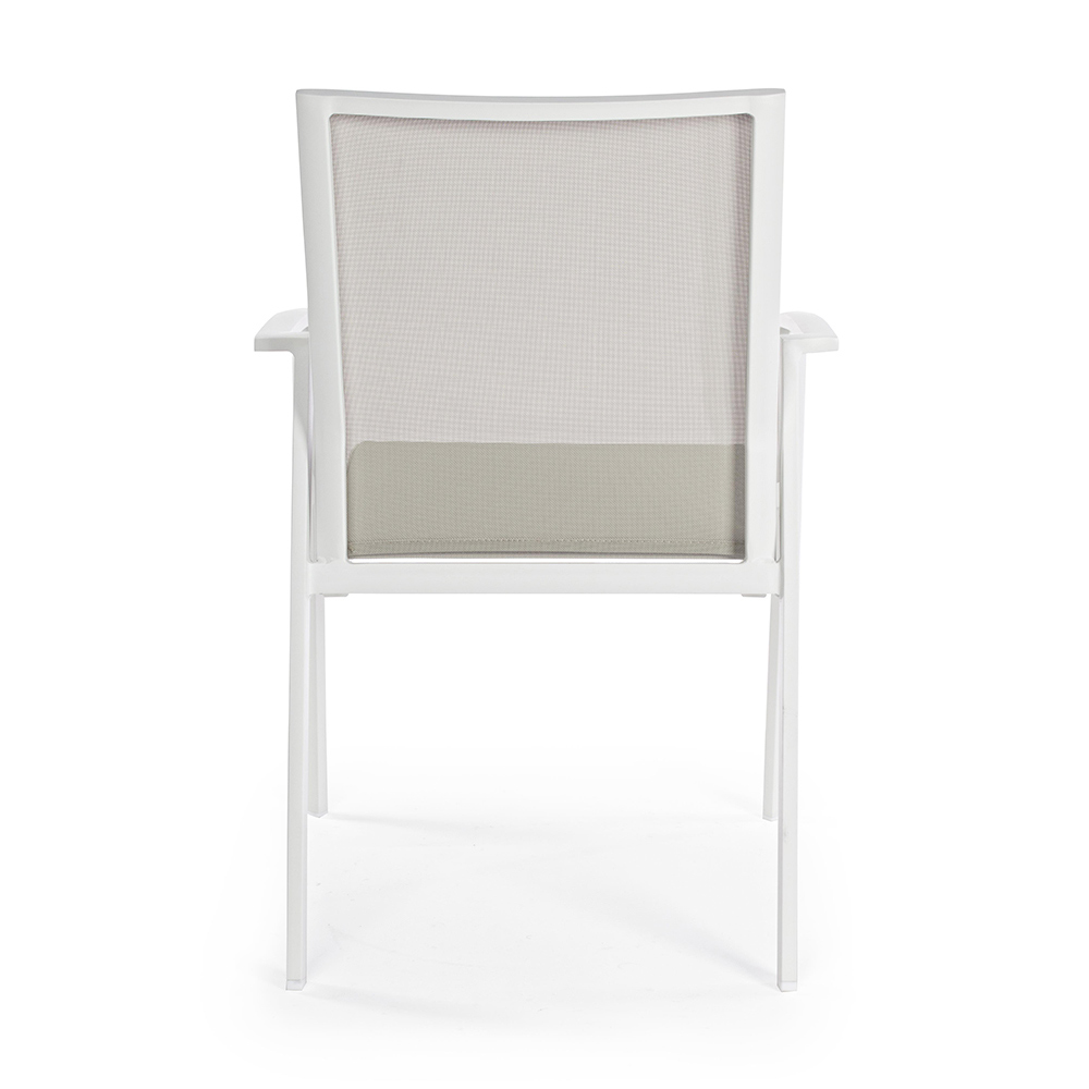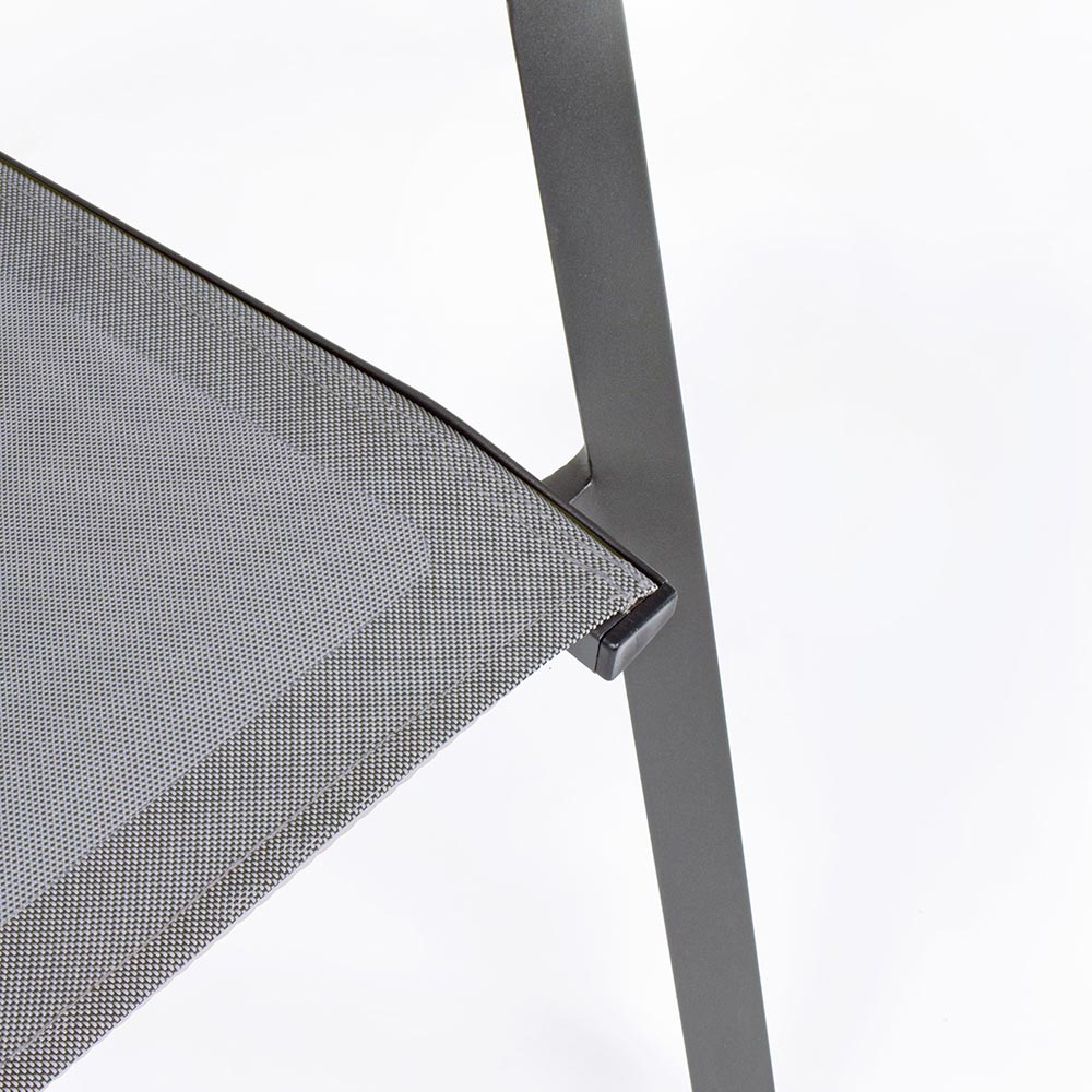 aluminiumsstruktur (polyester). Sæde og ryg betrukket med 1x1 Phifer