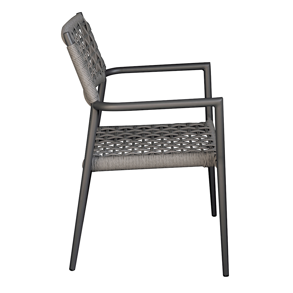 Den aluminiumsstruktur er let, holdbar og designet til at holde, selv i al slags vejr. Takket være den stabelbare funktion er denne stol perfekt til at optimere pladsen, hvilket gør den praktisk til både privat og erhvervsmæssig brug.