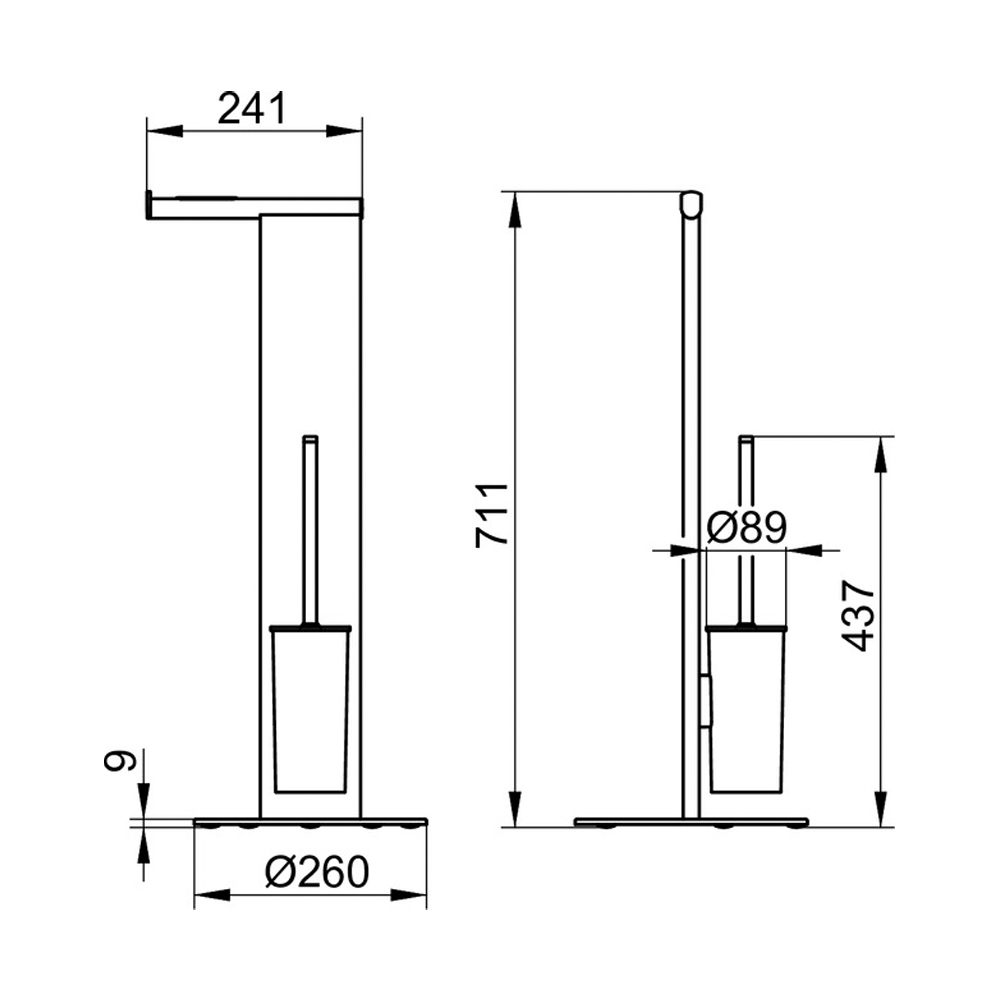 Standerholder og gulvbørste i hvid eller sort aluminium.