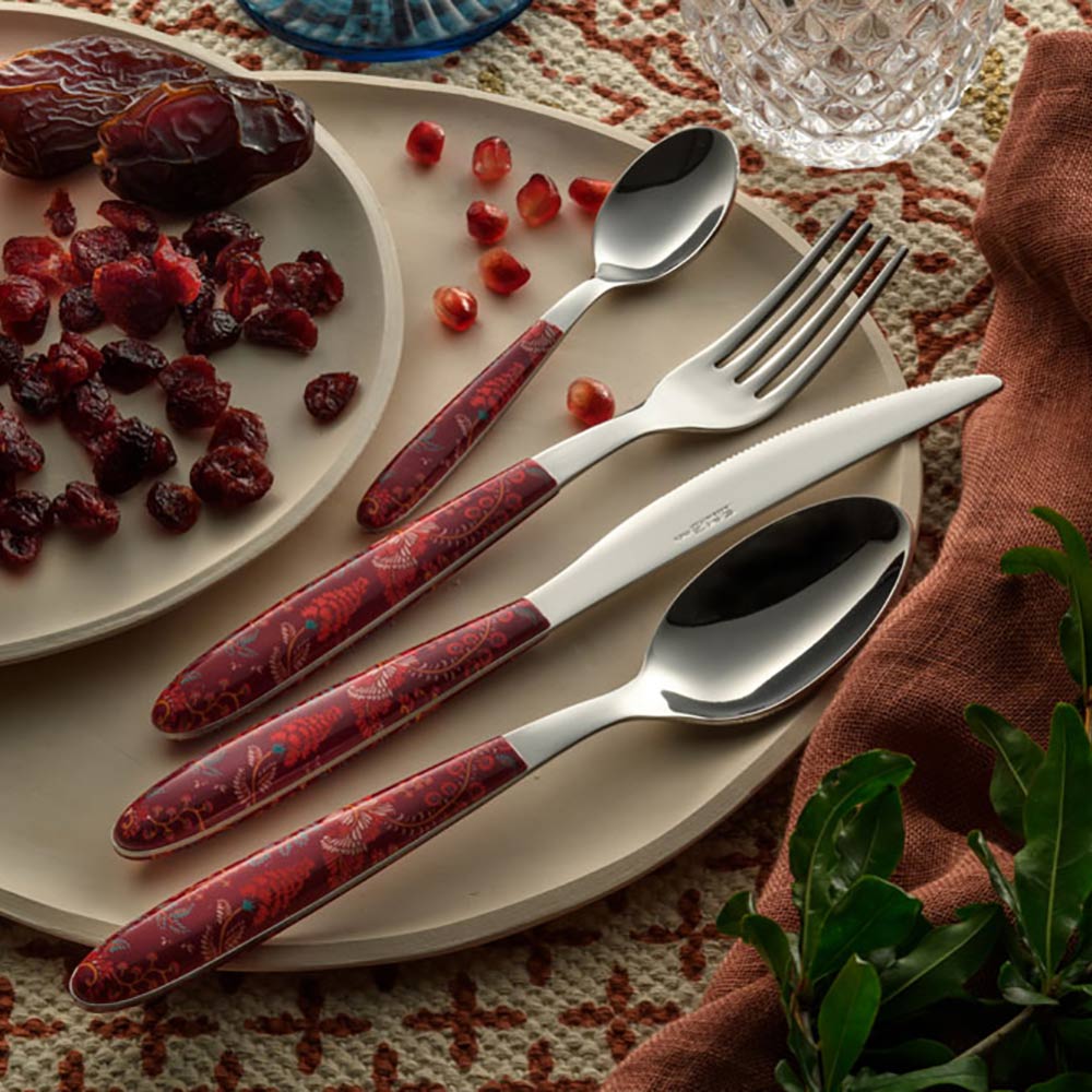 18/10 rustfrit stål bestik, det vil sige med 18% krom og 10% nikkel, som garanterer fremragende modstandsdygtighed over for korrosion og nem rengøring med en fremragende hygiejnisk koefficient.