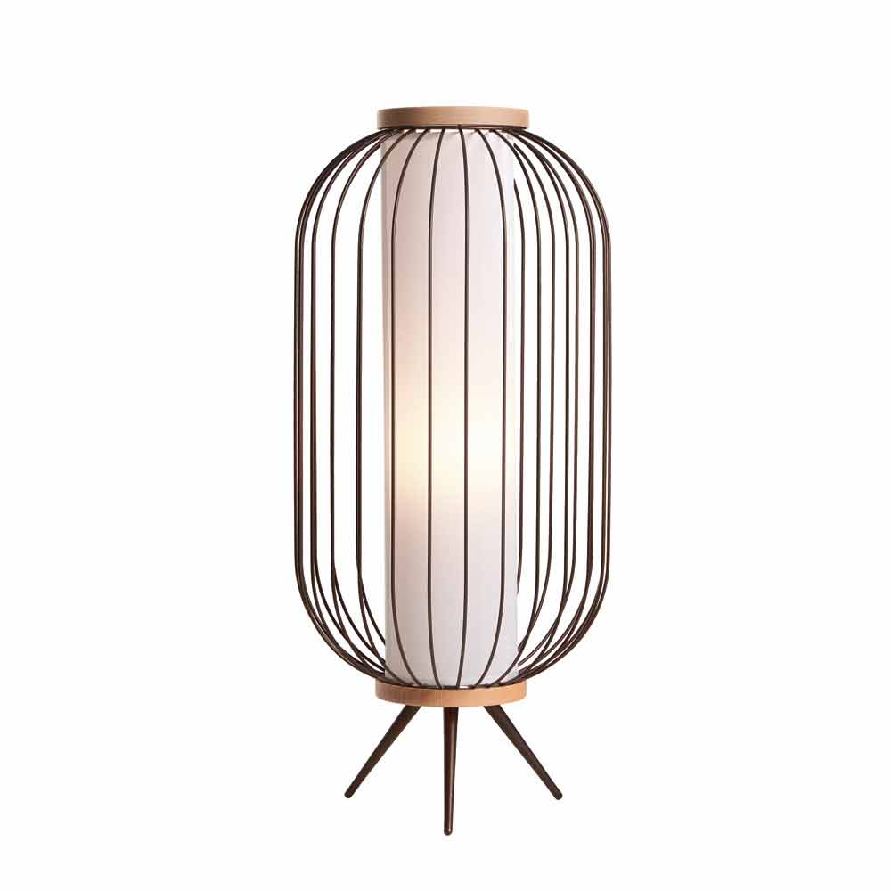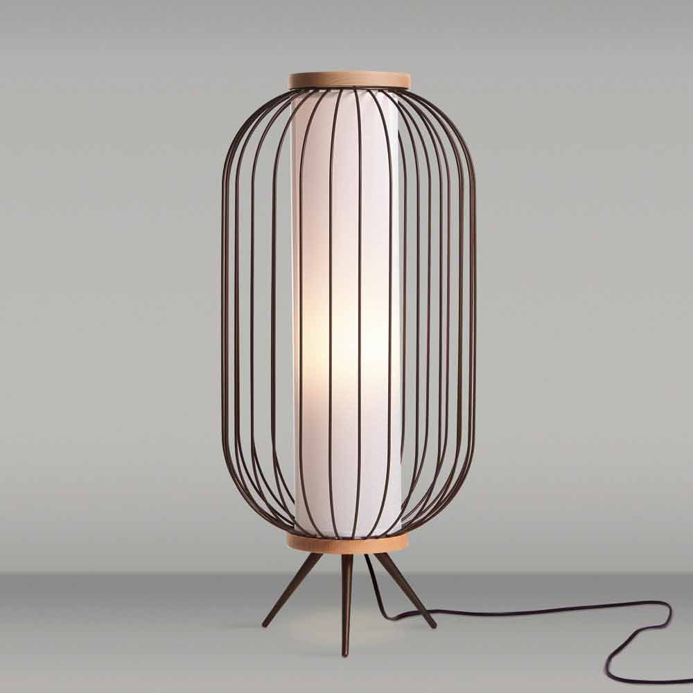 Standerlampe lavet af formet stål stang og malet med epoxy pulvere. De to bånd, der lukker kroppen er afrundede naturtræ. De formalede versioner kan også anvendes som svuotatasche enten uden lampeskærm. LED lyskilde til versionen med håndtag er udstyret med et genopladeligt batteri med en autonomi dicirca 6 timer.