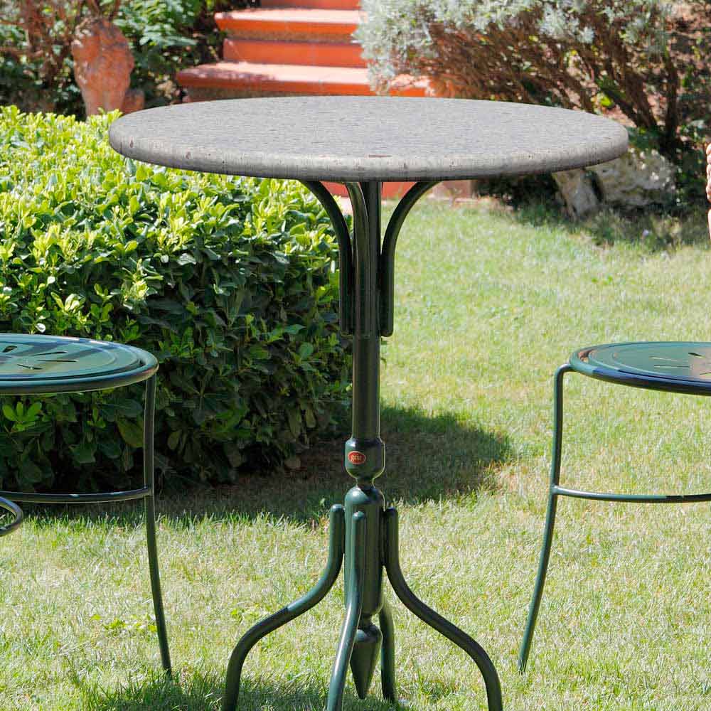 Udendørs sofabord håndlavet i Italien med rund stenplade og grønmalet jernbase. Et møbleringstilbehør til udendørs miljøer præget af klassiske træk, der minder om et design fra fortiden beriget og gjort unikt med den særlige finish, der dækker hele basen, sofabordets karakteristiske elementer. Stentoppen giver derimod et eksklusivt touch, samtidig med at det giver en solid og modstandsdygtig støtteflade såvel som strukturen, som takket være den varme galvanisering garanterer metalets rustfasthed i årtier og fremragende modstandsdygtighed over for ethvert middel. ætsende. Håndværket fremstillet i Italien giver os også mulighed for at tilbyde et produkt af høj kvalitet, der skiller sig ud takket være brugen af eksklusive materialer , opmærksomhed på detaljer og fine finish. Det, der er født, er derfor et funktionelt , holdbart og højkvalitetsprodukt.