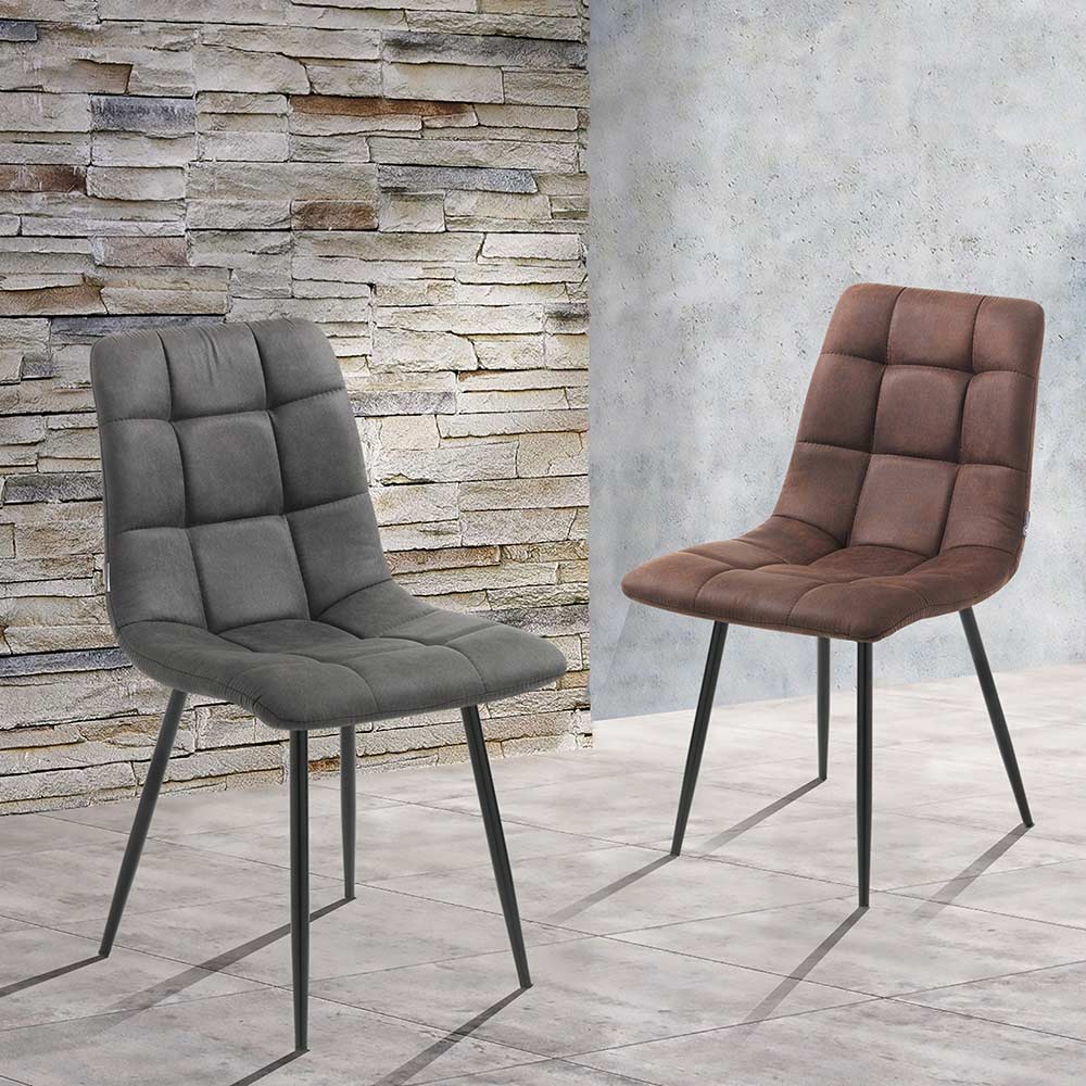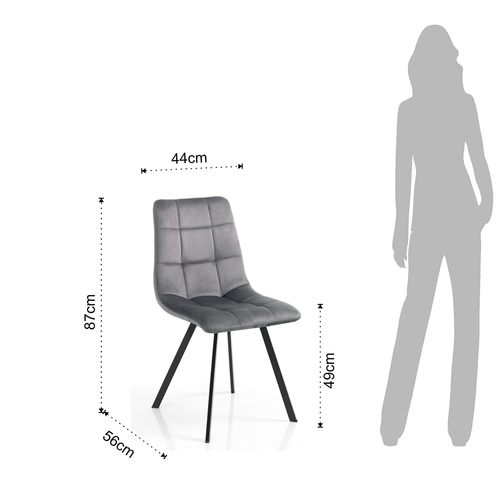 Spisestue- eller køkkenstol i metal og mikrofiber med fløjlseffekt, 4 stk.