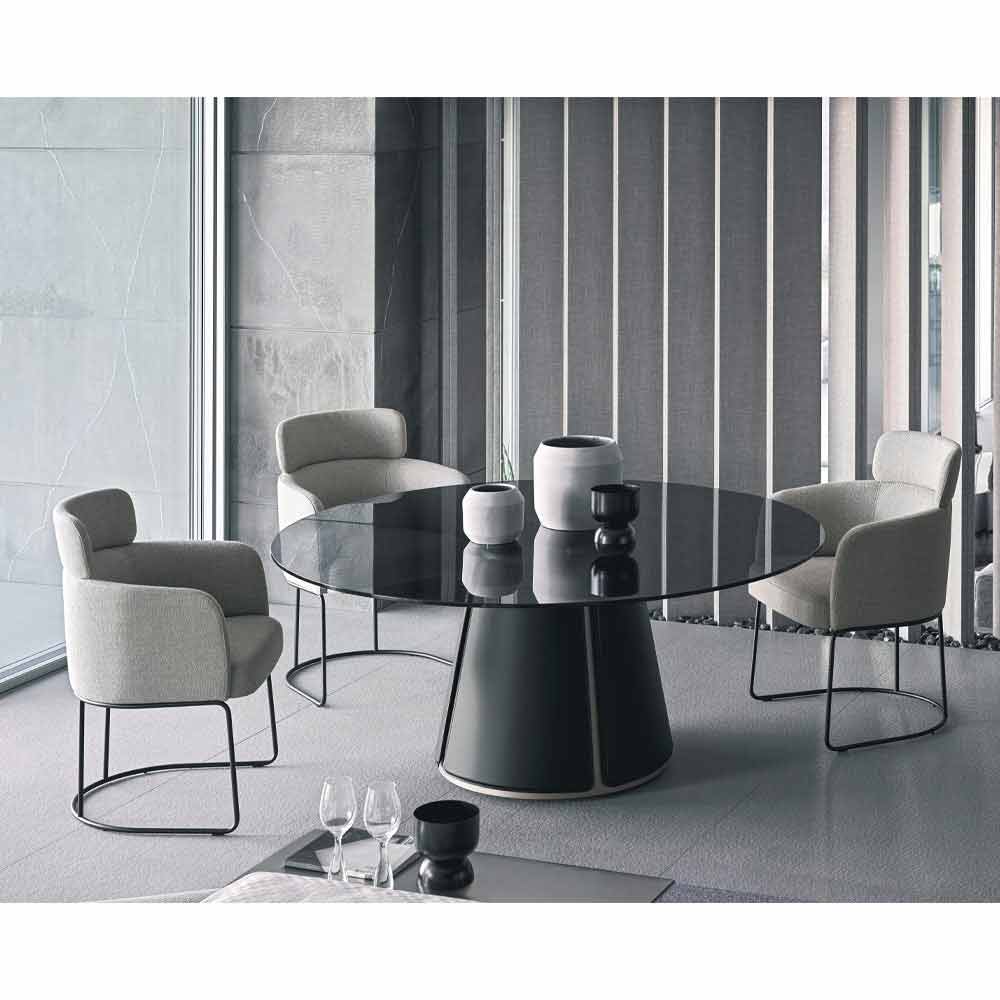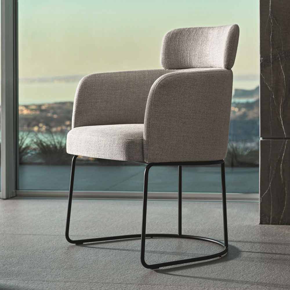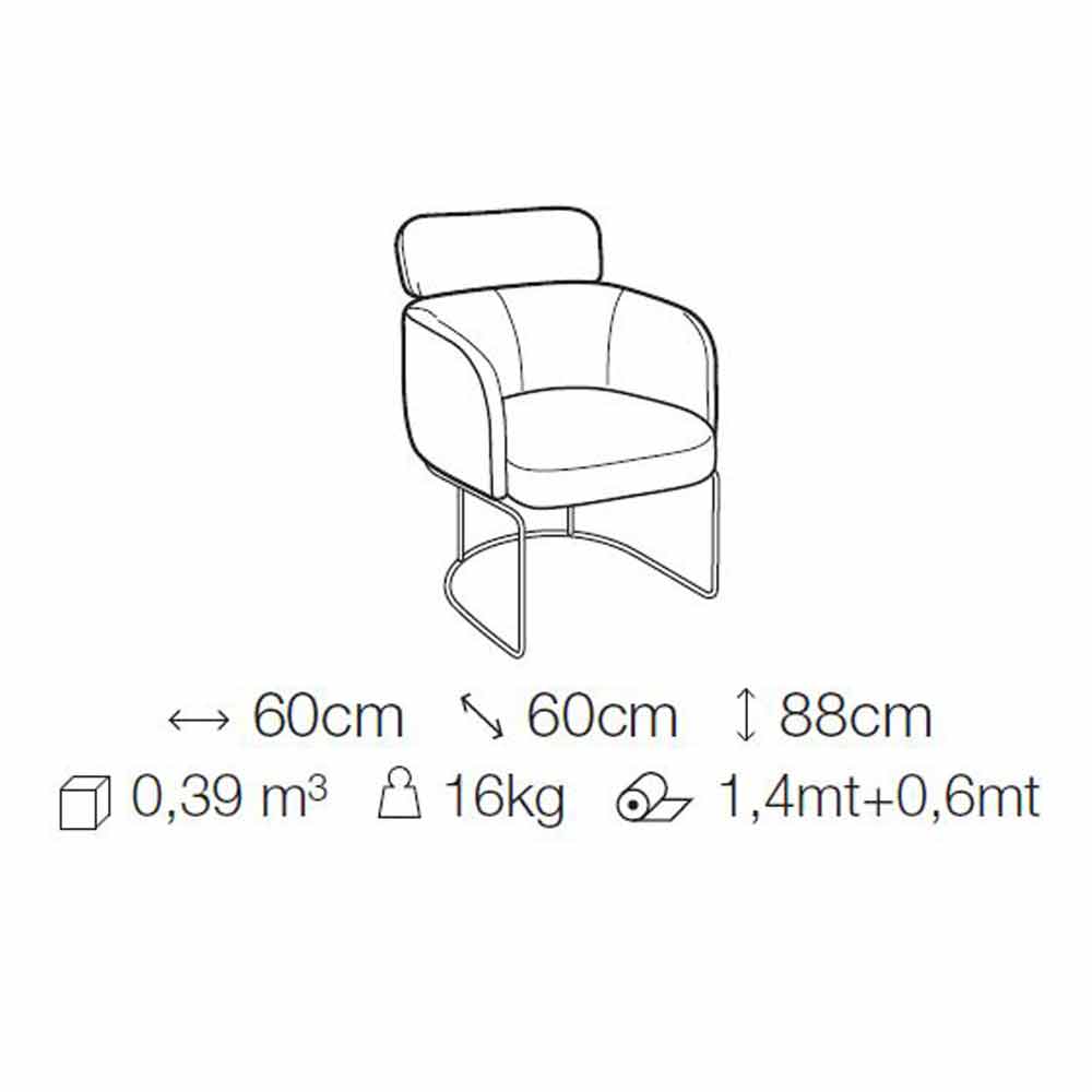 stof (ikke aftageligt). Bløde og omsluttende former giver en særligt moderne og eksklusiv møbleløsning liv. Takket være sin buede form genskaber kroppen følelsen af et ægte kram og formår at give liv til en lille rede, hvor man kan forkæle sig og slappe af for at tilbringe vidunderlige øjeblikke under frokost og middag med venner.