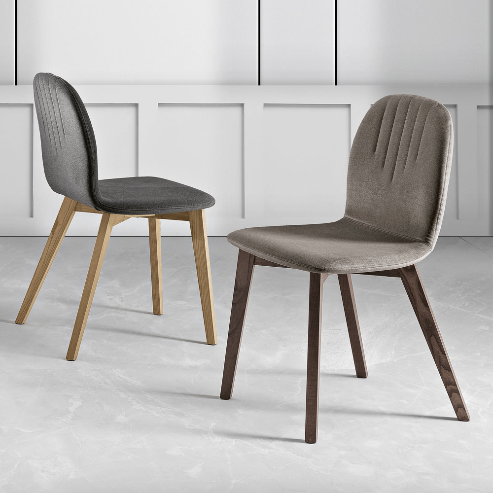 Ergonomi er ikke blevet forsømt; krumningen af ryglænet og sædets dæmpning tilbyder komfort , der inviterer dig til at forlænge din tid ved bordet. Kvalitetsstoffet giver en behagelig taktil oplevelse og holdbarhed , der står til hverdagen, mens benene i ask ikke kun lover stabilitet, men også langvarig robusthed.