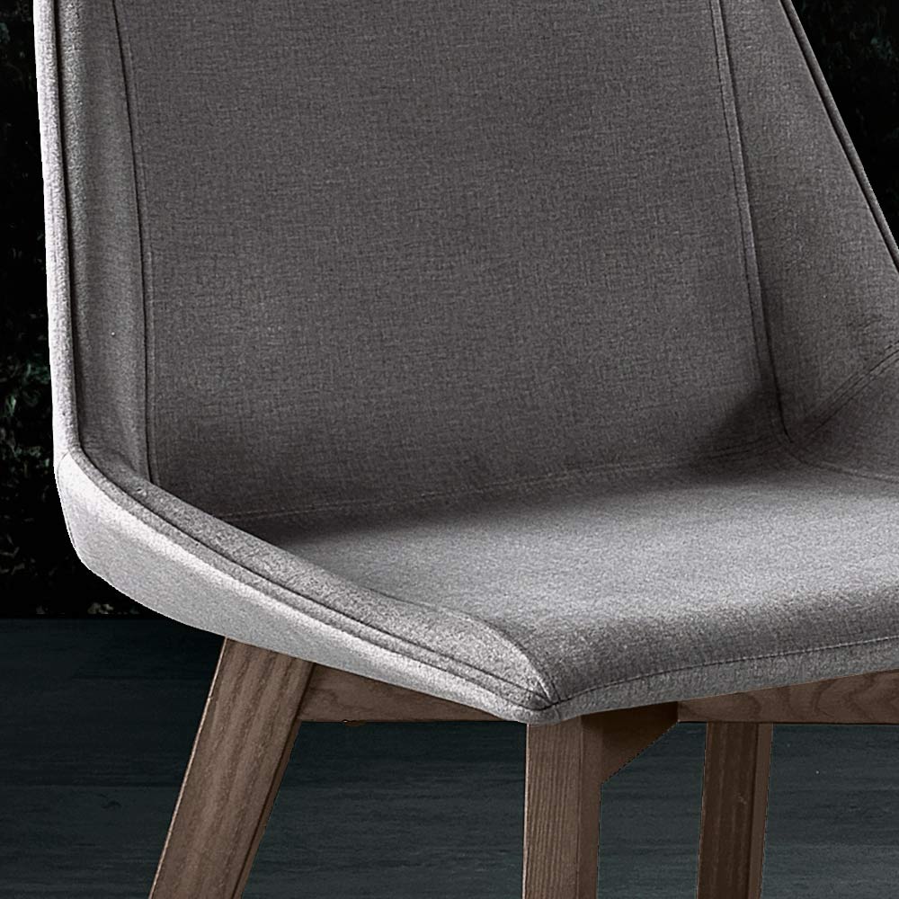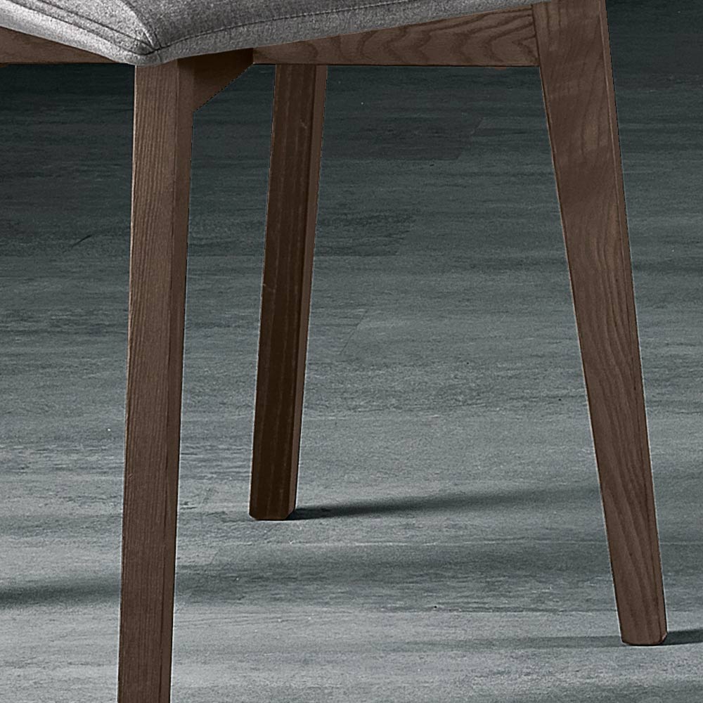 Asketræsbenene giver varme og stabilitet og minder om naturens skønhed og robusthed. Det skrå bendesign giver ikke kun et moderne look, men sikrer også en solid og langtidsholdbar struktur . Den grå farve på stoffet og den kogte aske på benene forenes i en omfavnelse af stil, der kan komplementere enhver type bord og indretning.