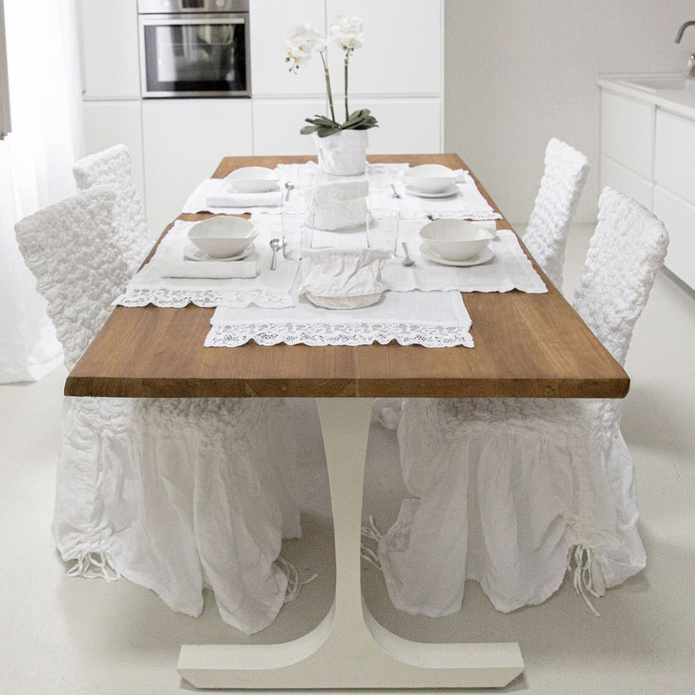 Stolovertræk i præget let linned med hvidt, sort, gammelt smør eller mineral gammelt fremstillet i Italien.
