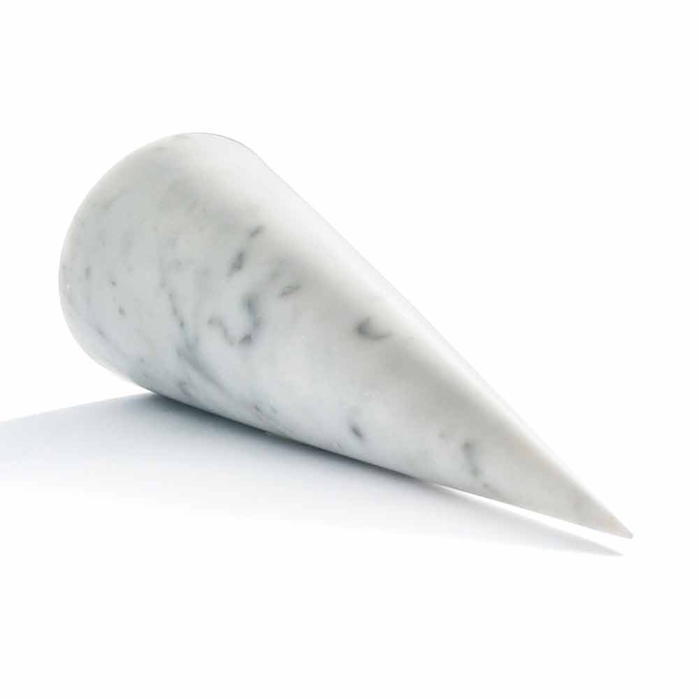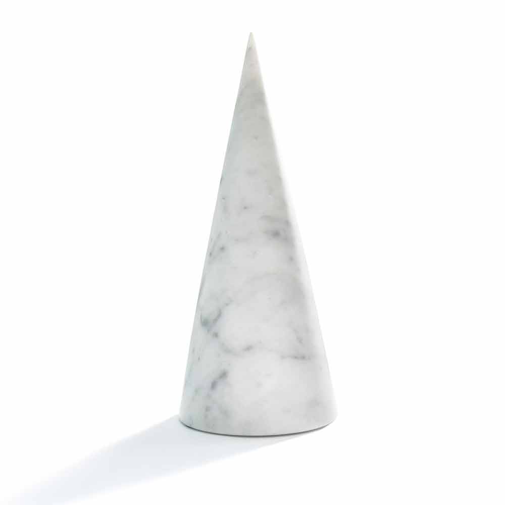 Stor dekorativ kegle lavet af hvid Carrara marmor . Det er et unikt stykke, da hver brugt marmorblok adskiller sig fra de andre for vener og nuancer.