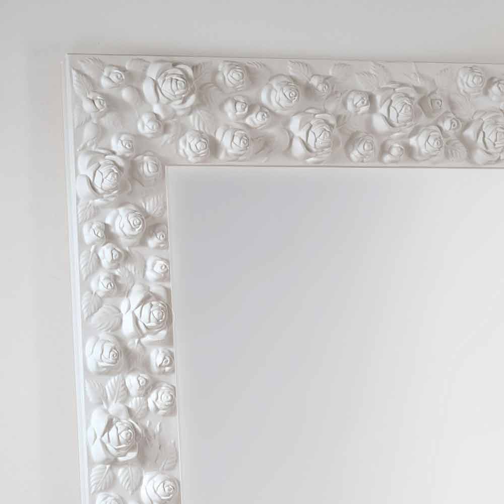 Spejlet Flower er kendetegnet ved en håndværksmæssig udført ved anvendelse af materialer af høj kvalitet og brug oplevelsen af faglærte italienske håndværkere. Rammen er lavet af træ og er dekoreret med roser. Hvid satin finish. Spejlglas, 4mm tykt. Made in Italy. Fra hænge både vertikalt og horisontalt.