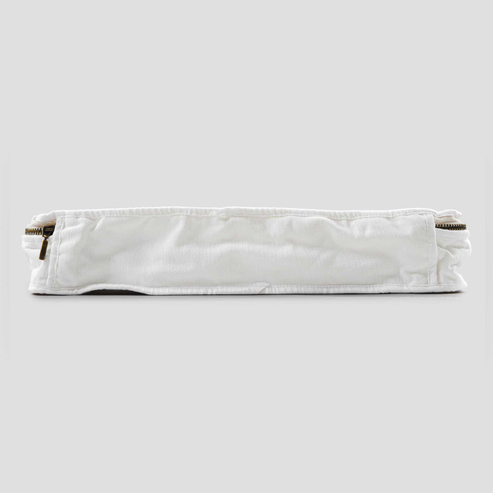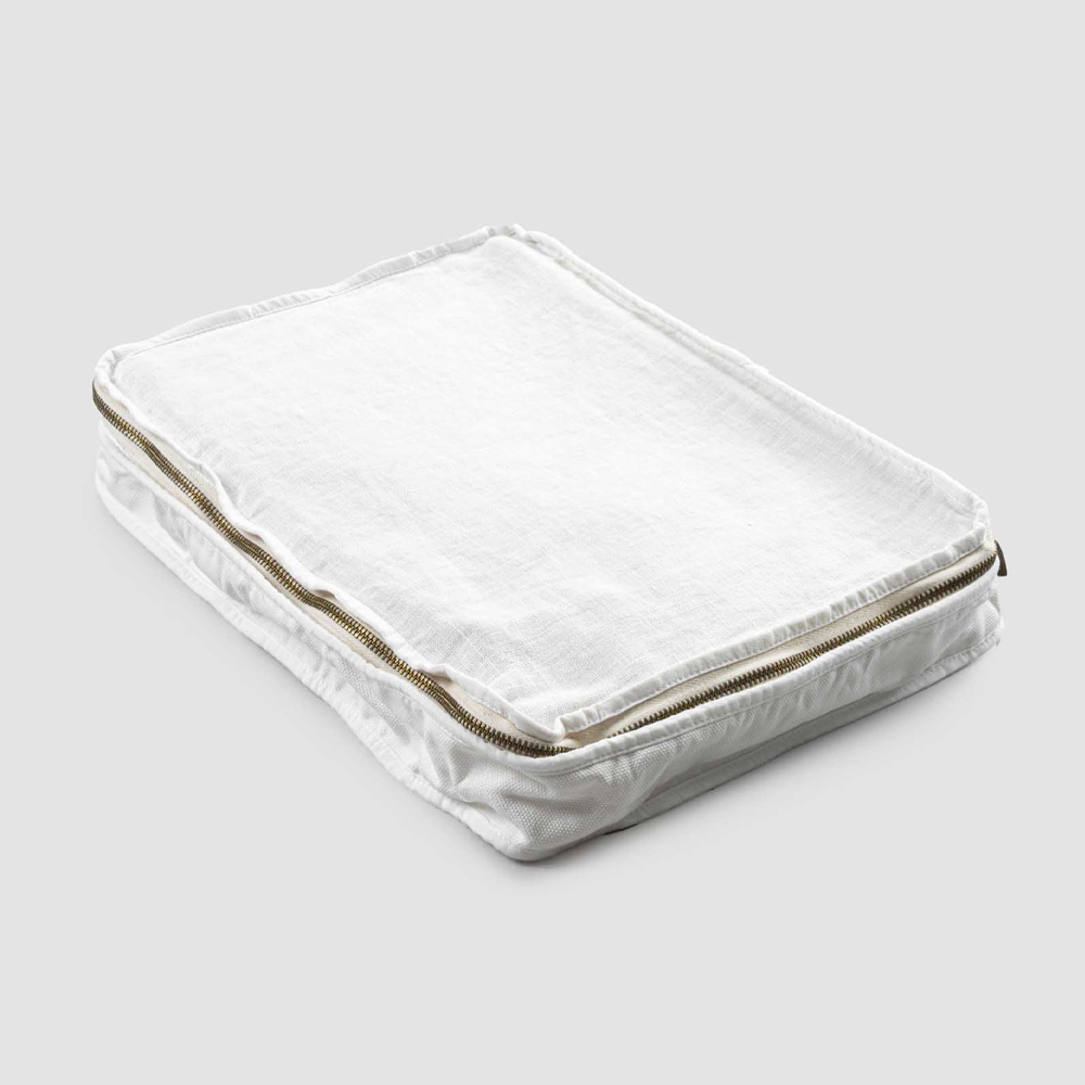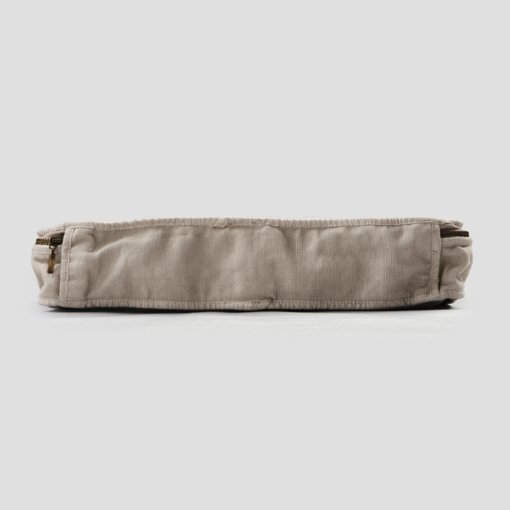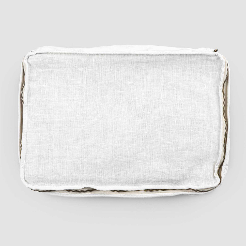 Rektangulær kosmetikpose i linned og retro bomuld eller gammel gips med lynlås, fremstillet i Italien.