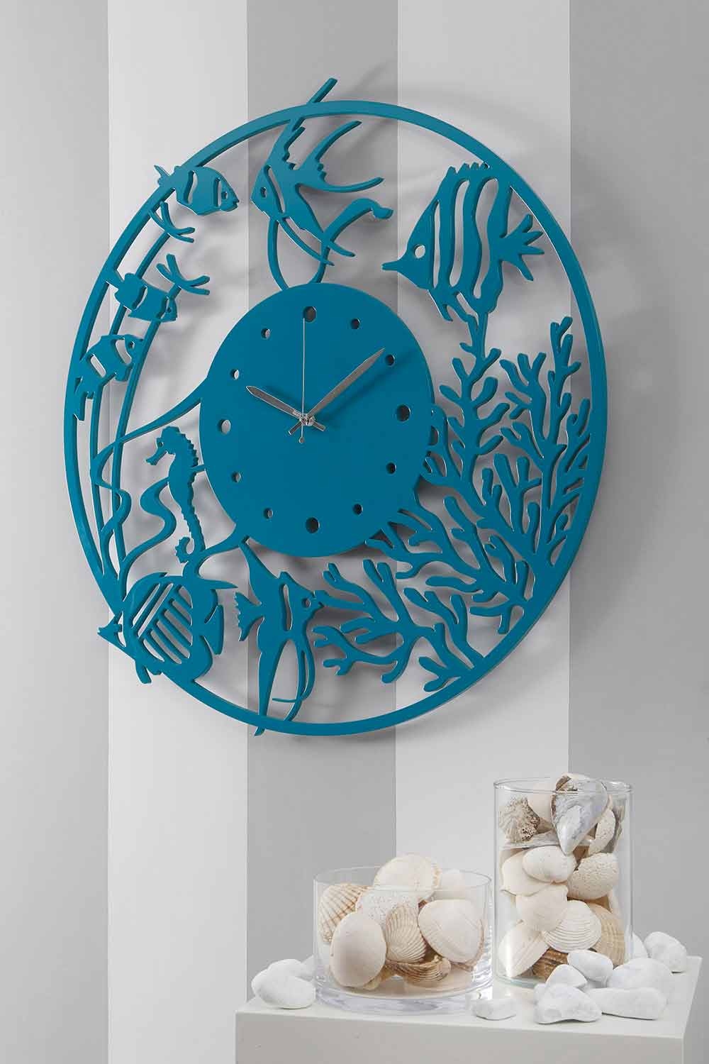 runde vægur, der skildrer et akvarium og havbundens liv.