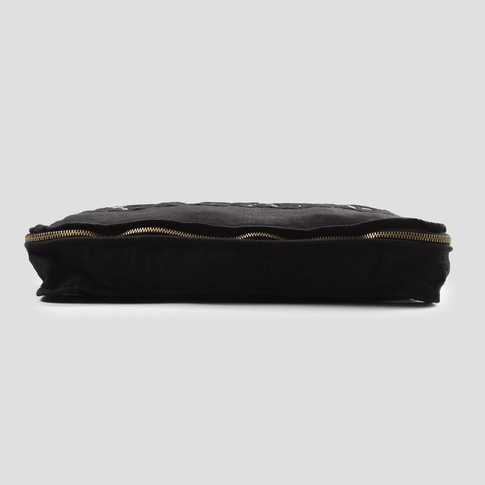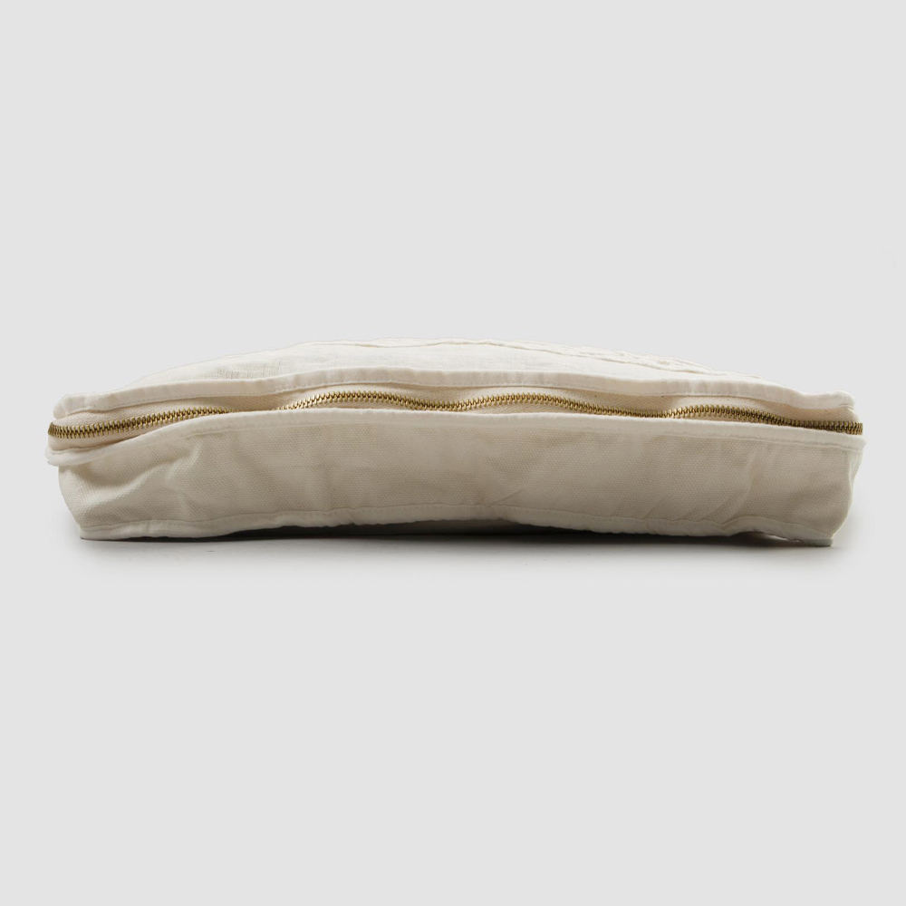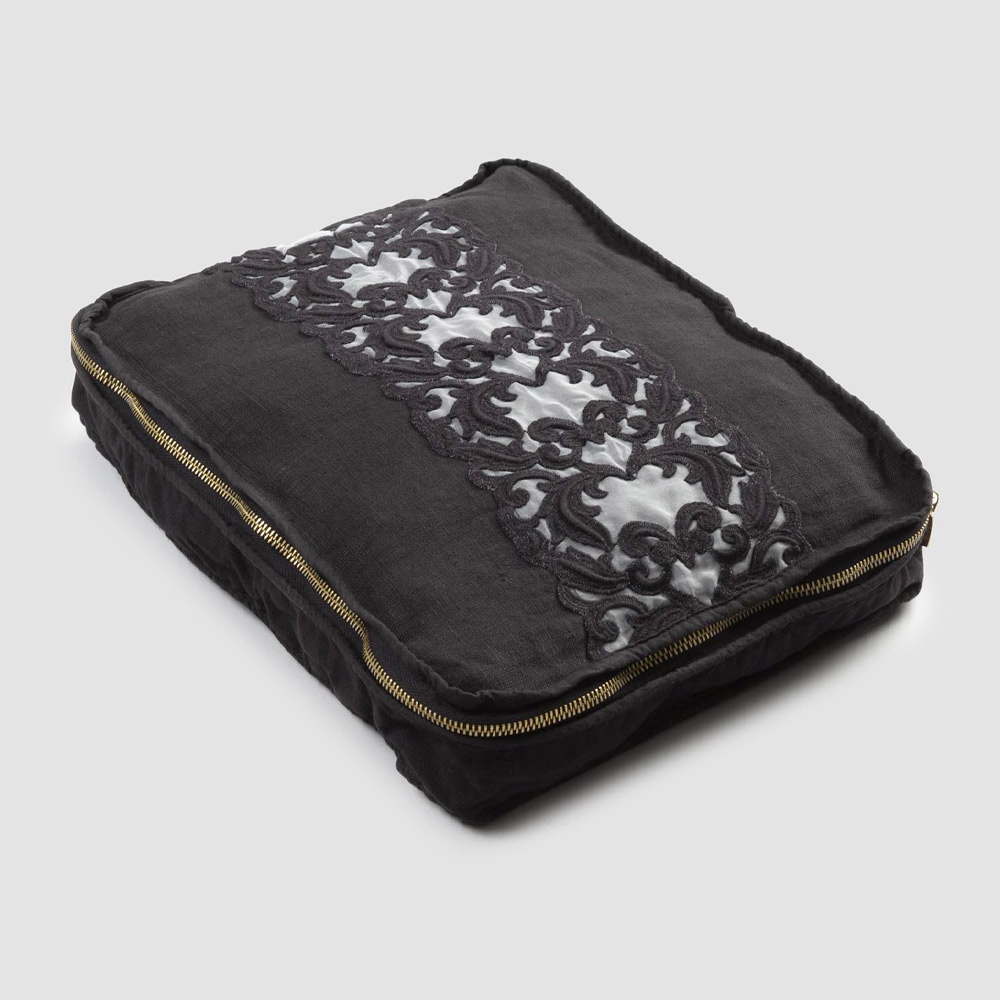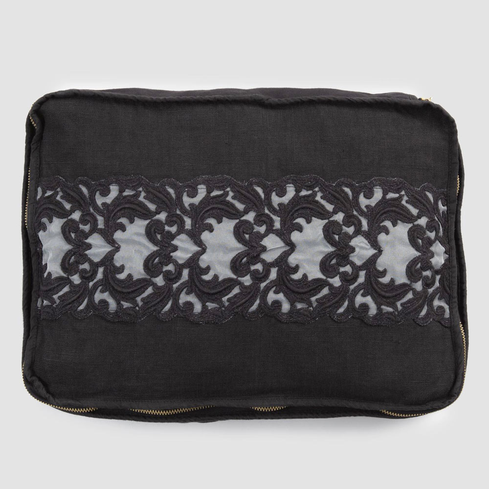 Rektangulær linned og bomulds kosmetikpose med lynlås og Farnese blonder, fremstillet i Italien.