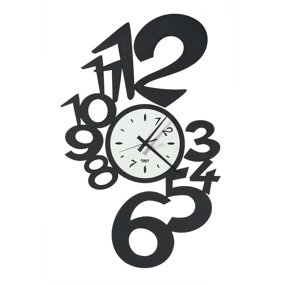 Vægur af jern, cirkulær urskive med udvendige numre i 3 finish lavet i Italien.