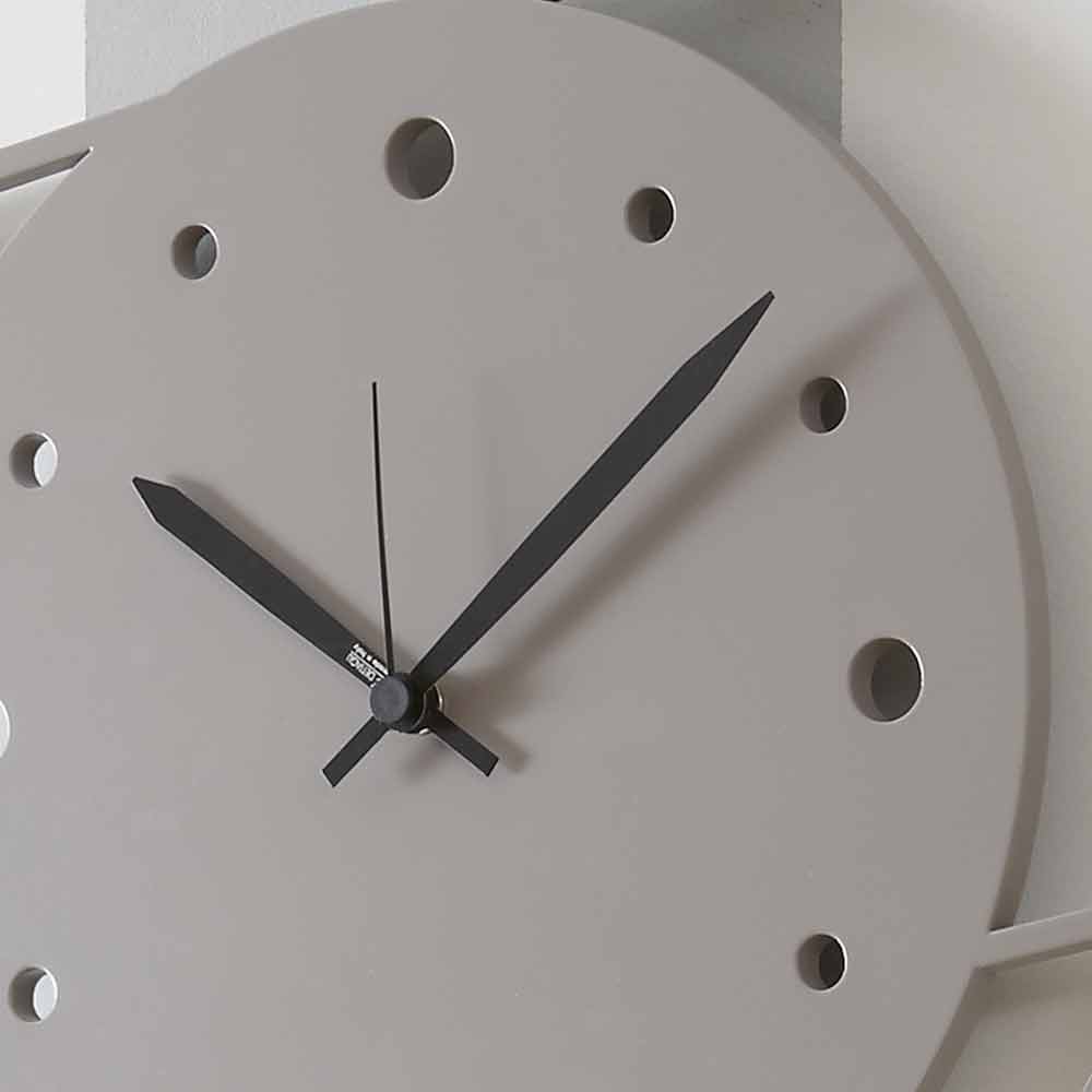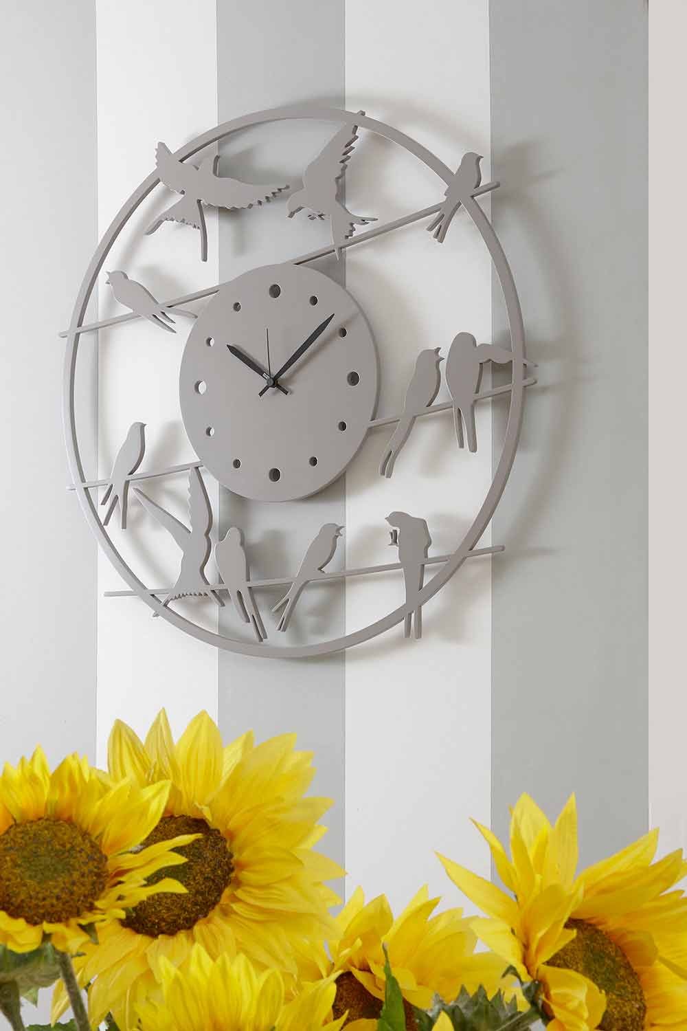 Stort og originalt vægur, rundt og moderne design med fugle, i hvidt, taupe eller gråt træ lavet i Italien.