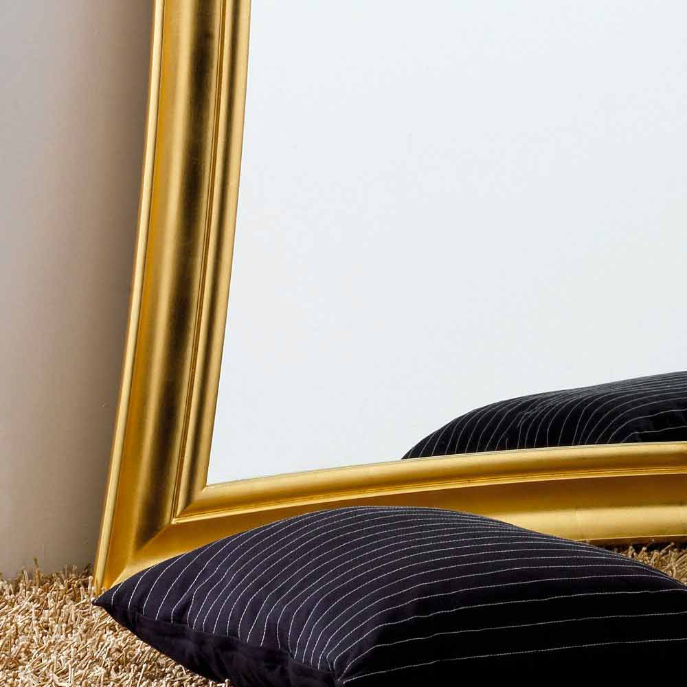 The Heart spejl er kendetegnet ved en håndværksmæssig udført ved anvendelse af materialer af høj kvalitet og brug oplevelsen af faglærte italienske håndværkere. Rammen er lavet af træ. bladguld finish. Spejlglas, 4mm tykt. Made in Italy. Fra hænge både vertikalt og horisontalt.