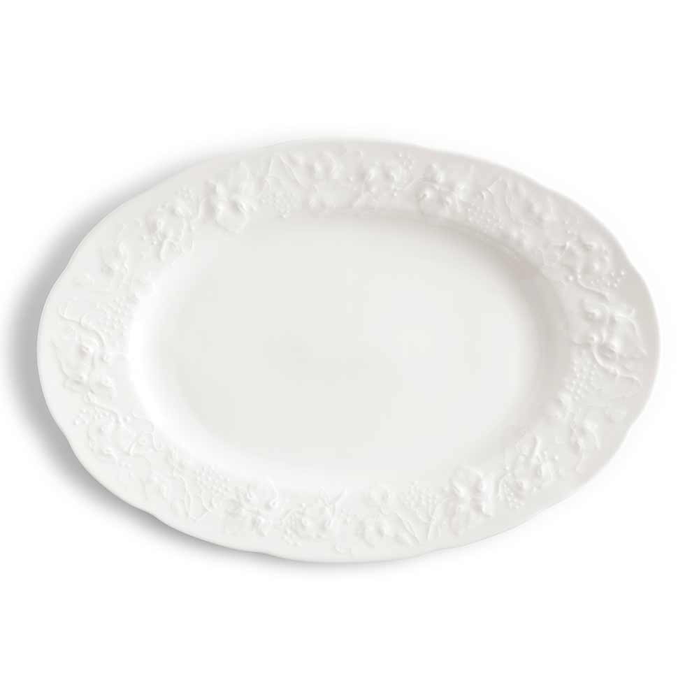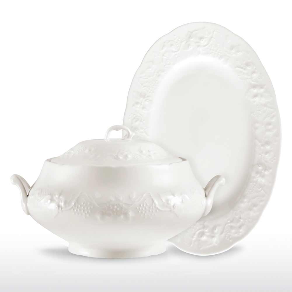 Stor elegant og raffineret suppeturin og oval serveringsbakke i hvidt porcelæn, 2 stk.